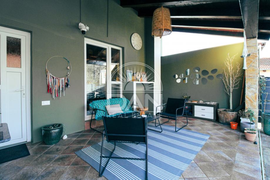 Iz dnevnog dijela izlazi se na natkrivenu terasu za opuštanje i druženja na otvorenom tijekom cijele godine. Grijanje i hlađenje riješeni su putem klima uređaja i kamina. Na raspolaganju je privatno parkiralište, kao i uređeni prednji i stražnji vrt s pravim mediteranskim ugođajem, idealan za one koji vole boravak u prirodi, šetnje i vožnje biciklom.