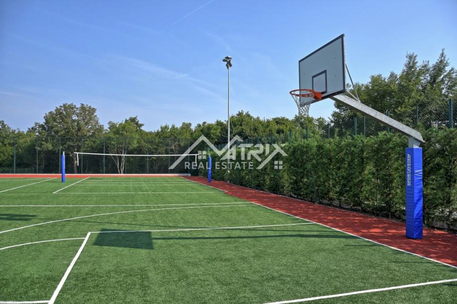 Posebnost ove vile je i to što vlasnici u suvlasništvo (1/4) dobivaju potpuno opremljenu sportsku zonu s terenima za rukomet, tenis, nogomet, košarku i odbojku, stolove za stolni tenis, veliko dječje igralište te fitness zonu na otvorenom. Prava rijetkost na tržištu!