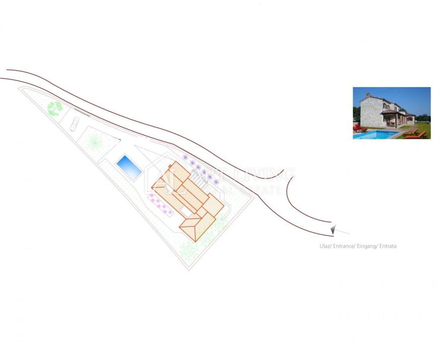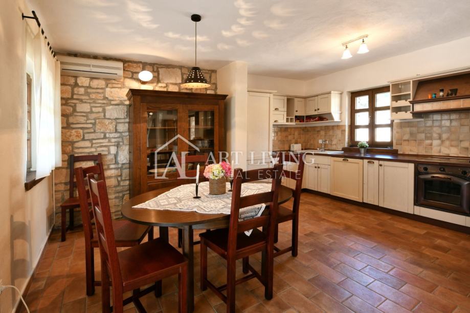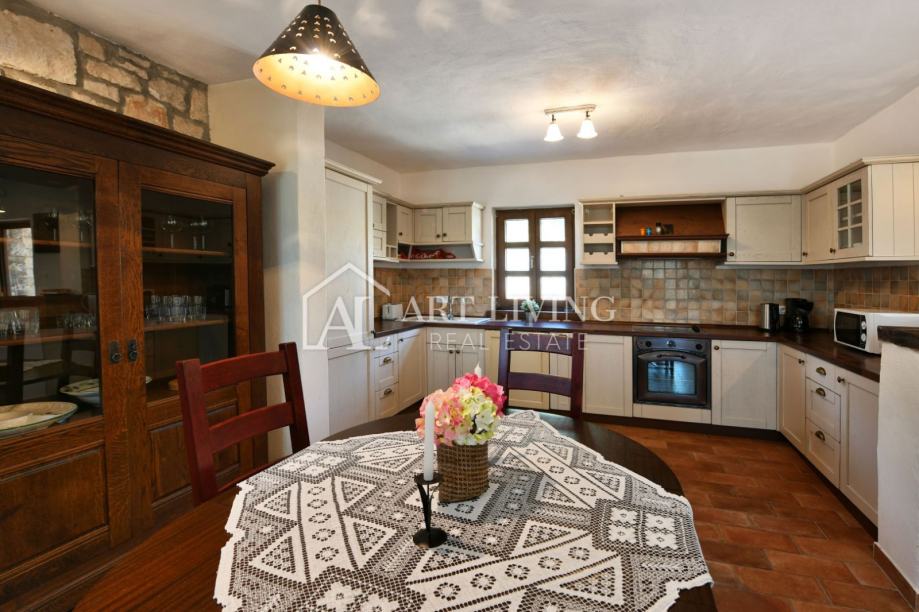 U idiličnom istarskom naselju okruženom prirodom i prekrasnim istarskim krajolikom, prodaje se šarmantna kamena villa u istarskom stilu s bazenom, udaljena 17 km od grada Poreča i njegovih prekrasnih plaža te 13 km od šarmantnog istarskog bisera Grožnjana