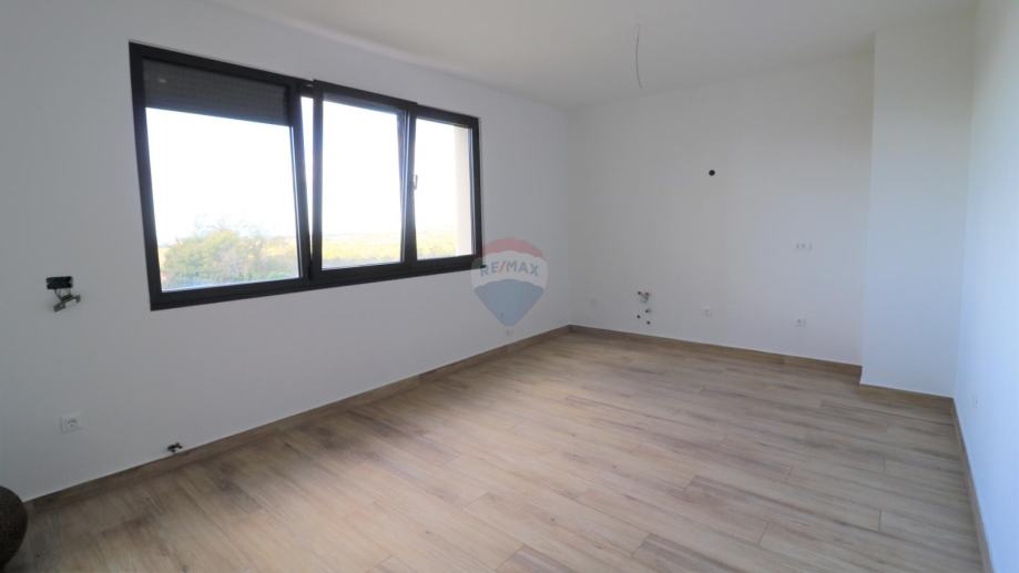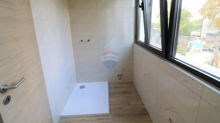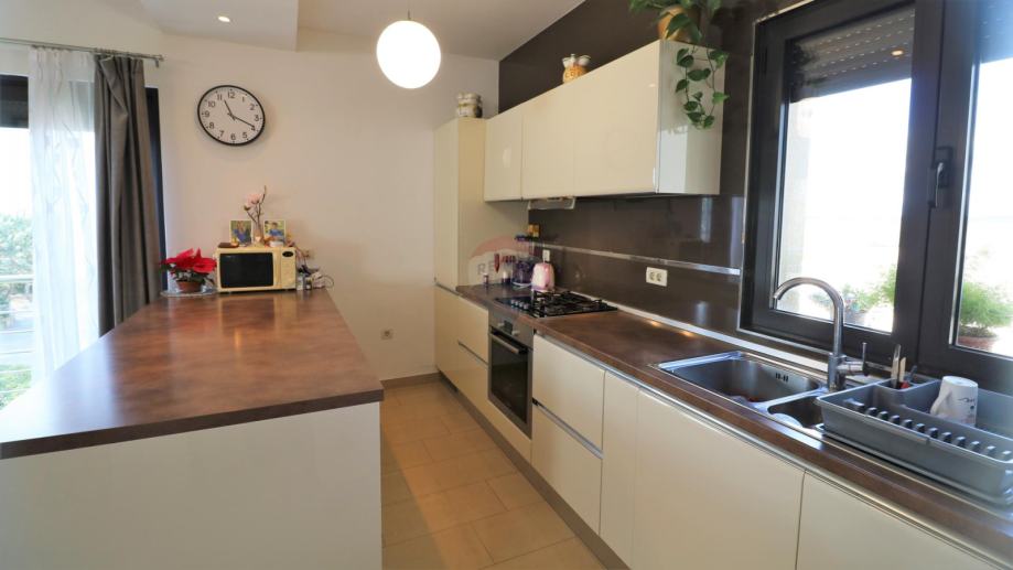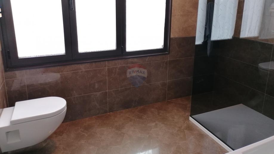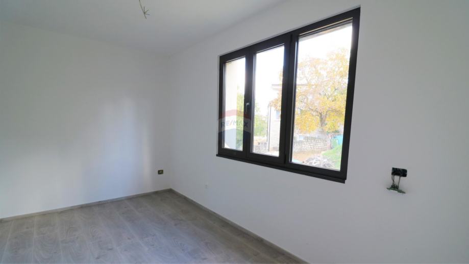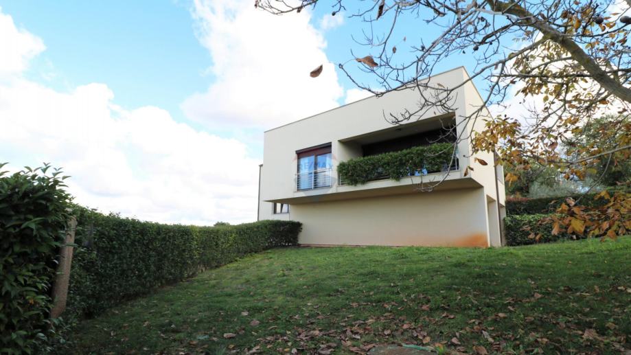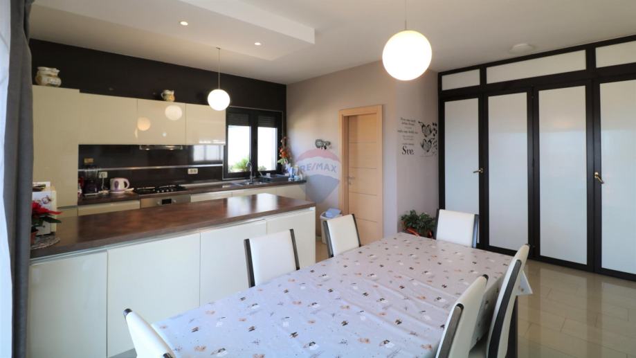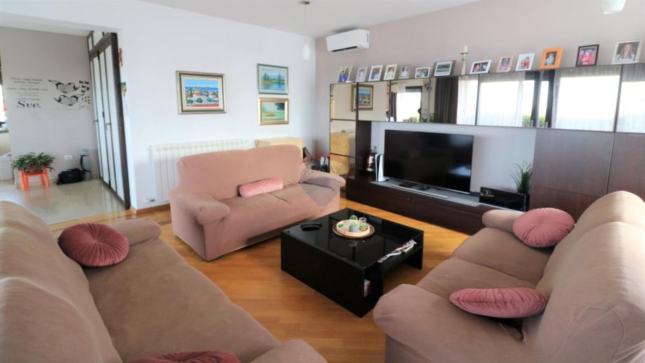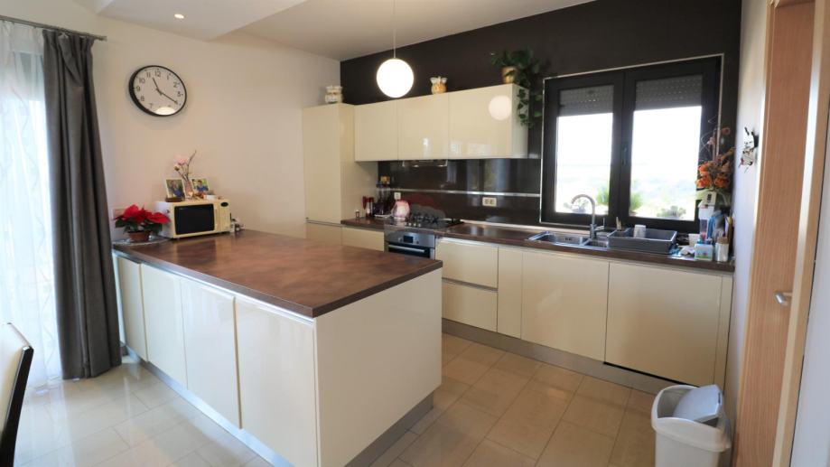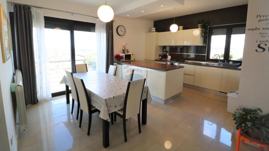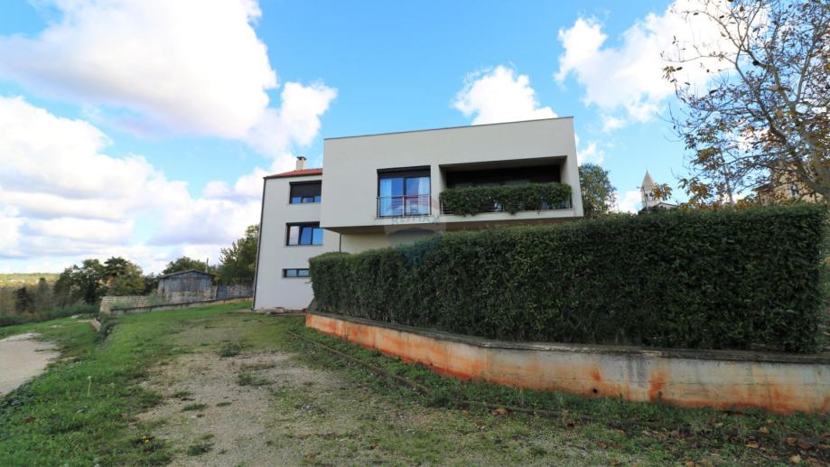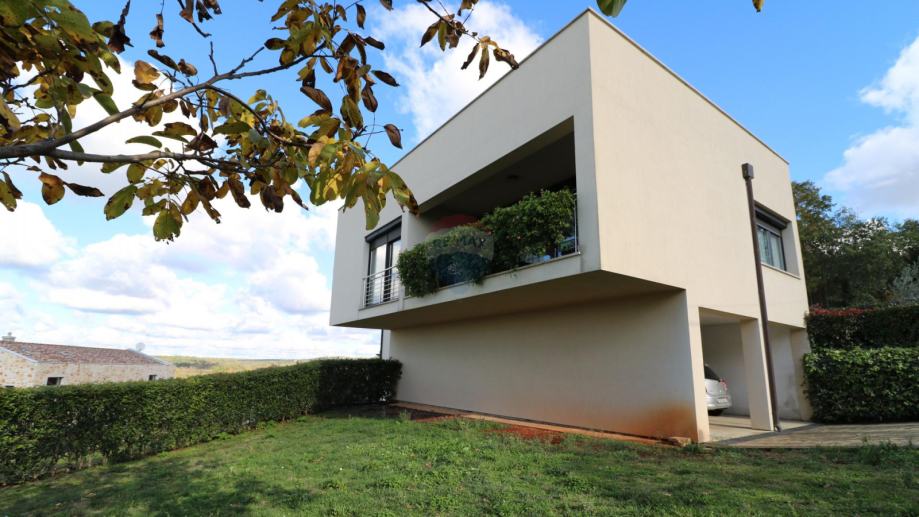 Prodaje se moderna kuća, smještena na udaljenosti od 10 km do mora. Kuća ima dvije stambene jedinice i organizirana je na poluetažama koje kruže oko unutarnjeg stubišta s kojeg se pristupa svim dijelovima stambene zgrade.
