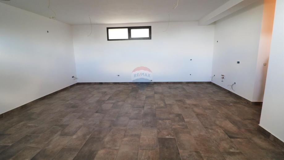 U prizemlju je smještena otvorena garaža za dva vozila i radna soba, a viša poluetaža prizemlja ima glavni hodnik i manji stan, s open space dnevnim djelom i kuhinjom, dvije spavaonice i kupaonicom.