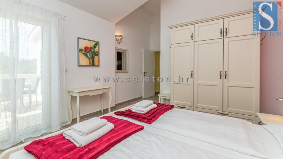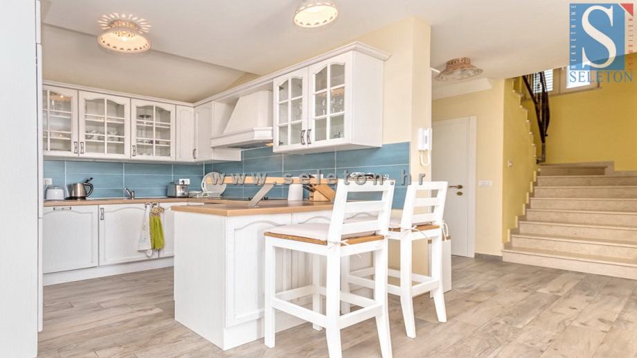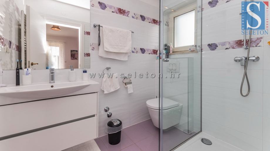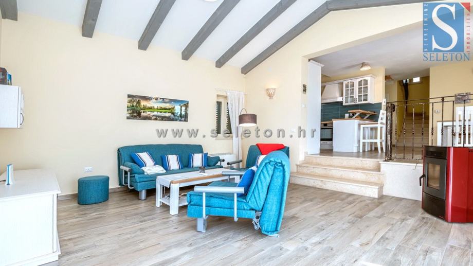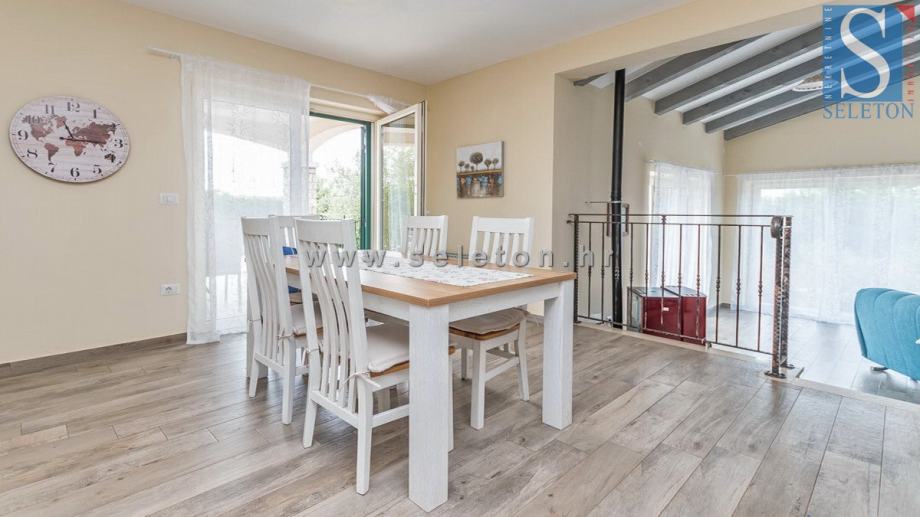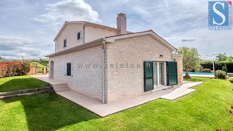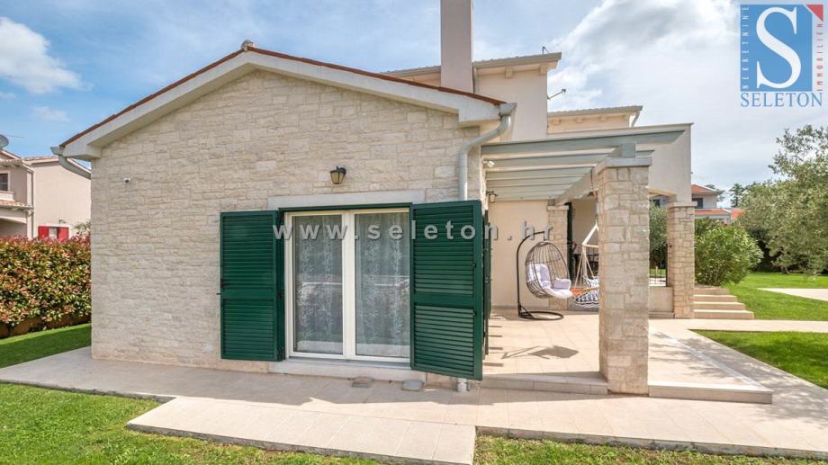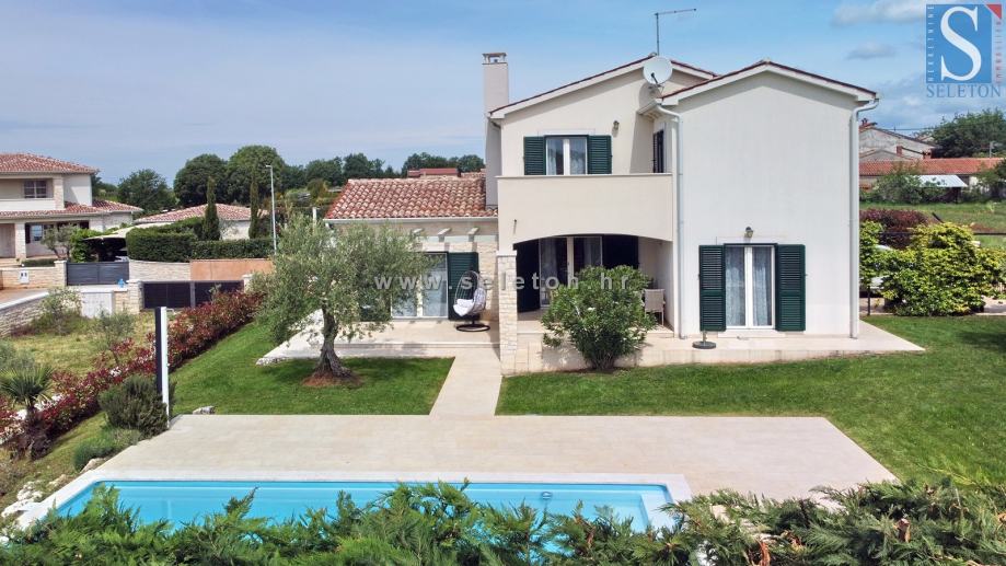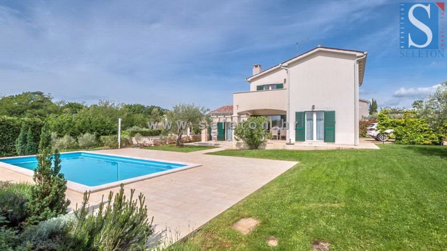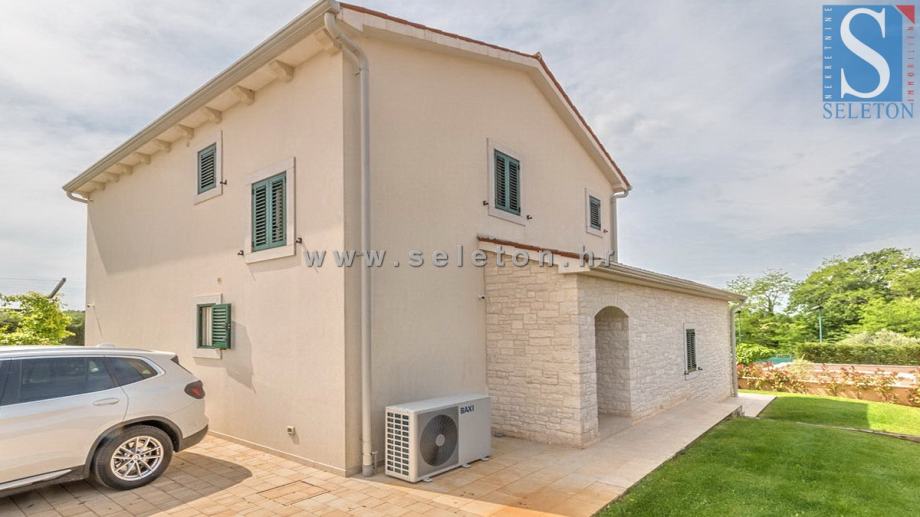 Prodaje se samostojeća kuća površine 130 m², sastoji se od dnevnog boravka, kuhinje, blagovaonice, natkrivene terase, hodnika, ostave, WC za goste i jedne spavaće sobe s vlastitom kupaonicom u prizemlju kuće, te od hodnika, dvije spavaće sobe s kupaonicama i terase na katu kuće. Kuća je izgrađena 2019. godine na zemljištu površine od 750 m², prodaje se kompletno namještena, ima bazen površine 27 m², grijanje i hlađenje s dizalicom topline, automatsko navodnjavanje, videonadzor, 2 parking mjesta i mogućnost spajanja na internet putem optičkog kabla. Kuća je udaljena cca 14 km od Poreča i mora.