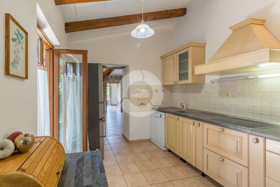 Šarmantna kamena vila smjestila se na rubu građevinske zone jednog malog istarskog autohtonog mjesta nedaleko od Poreča (12 km). Sagrađena je prije 1968. godine, no kompletno obnovljena 2009. godine. Okružena je prirodom, te ima prostranu okućnicu od 1430 m2. Na ulazu u dvorište ju krasi stoljetni hrast. Kuća se sastoji od dvije etaže. U prizemlju je smješten ulazni hodnik, kupatilo, dnevni boravak, blagovaona, spavaća soba i kuhinja. Sve prostorije u prizemlju imaju komunikaciju sa vrtom, te kuhinja ima i izlaz na ljetnu kuhinju koja se nalazi u bočnom dijelu kuće. U dnevnom boravku se nalazi kamin, kao i u ljetnoj kuhinji. Na katu su smještene još dvije spavaće sobe i jedna kupaona, te prostrana natrkivena terasa. U vrtu se nalazi bazen od 32 m2 sa dodatkom za djecu (plitka voda), tuš, vrtna kućica, ljetna kuhinja sa prostorom za druženje, parkirna mjesta, te prostrana zelena površina. Cijela okućnica je ograđena. Grijanje je regulirano centralnim sistemom na plin i kaminom, dok se za hlađenje koriste klime. Postoji i centralni bojler za toplu vodu. Fasada je obnovljena prije 3 godine. Kuća je idealna za turistički najam, no obzirom da ima centralni sustav grijanja, pogodna je i za cijelogodišnje življenje. Nekretnina je dostupna odmah!