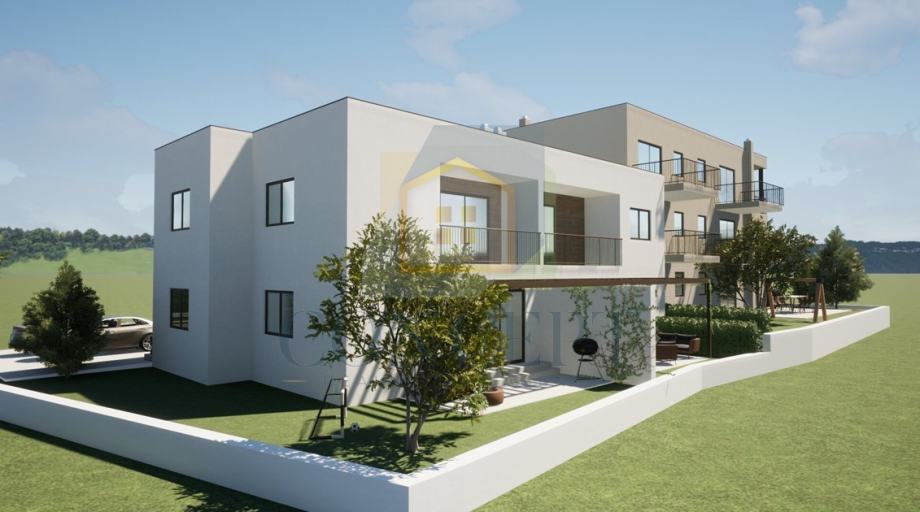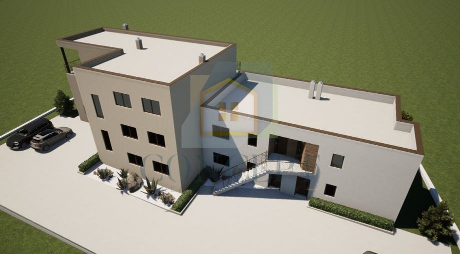 Prodaje se stan na prvom katu novogradnje u manjoj stambenoj zgradi s ukupno osam stanova, smještenoj u uređenom naselju s kompletnom infrastrukturom. Lokacija je pogodna za svakodnevni život i turistički najam – svi potrebni sadržaji poput trgovine, škole, vrtića i restorana nalaze se u pješačkoj zoni, a more je udaljeno svega 3 km.