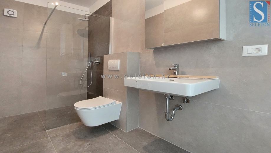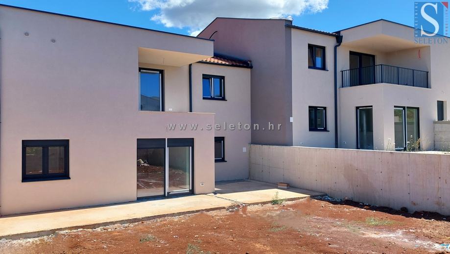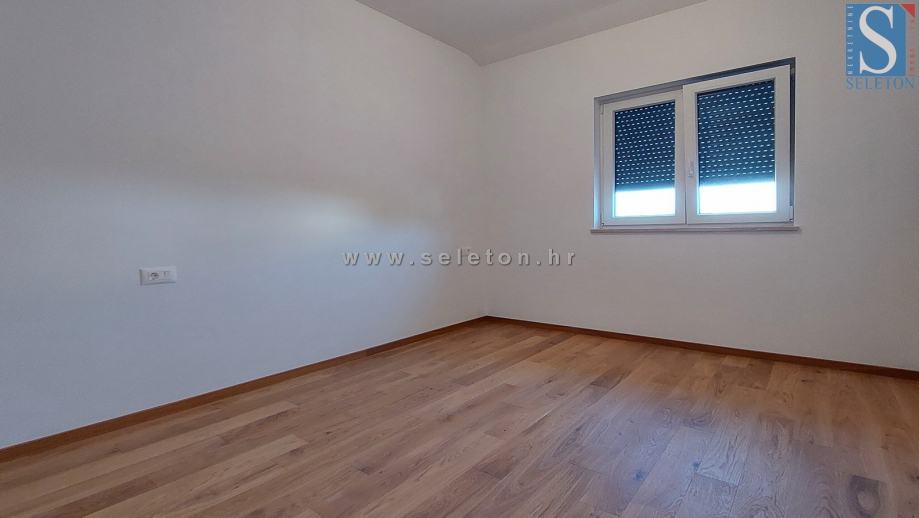 Prodaje se novi stan u okolici Poreča površine 72 m², sastoji se od dnevnog boravka, blagovaonice, kuhinje, hodnika, natkrivene terase, 2 spavaće sobe, kupaonice, WC-a i spremišta. Stan se nalazi na prvom katu zgrade u kojoj se nalaze samo 4 stana, ima 2 parkinga, podno grijanje u dnevnom dijelu, klima uređaj u dnevnom boravku i u spavaćim sobama, prozore s tri IZO stakla i električnim roletama i protuprovalna vrata. Stan je udaljen ca 3 km od mora i 9 km od centra Poreča, u naselju se nalaze restorani, kafići, ljekarna i škola, do supermarketa ima ca 1 km.