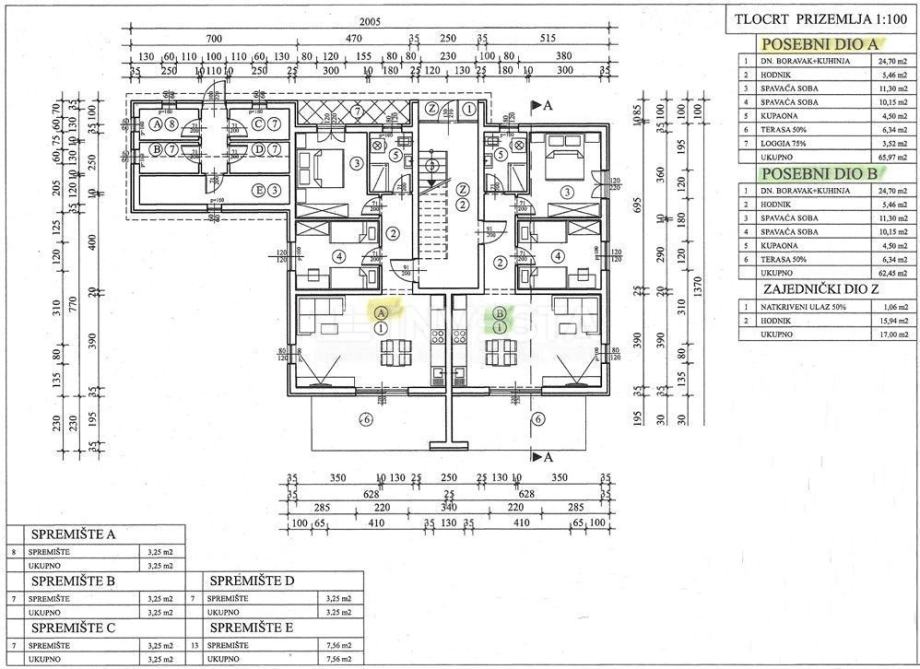 Zgrada ima svega 5 stambenih jedinica i smještena je na rubu građevinske zone u mirnom naselju, udaljenom od centra Poreča svega 9 km. Ukupna površina stana iznosi 65,70 m2, od čega je korisne površine 62,45 m2 te ostava površine 3,25 m2. Stan se sastoji od ulaznog dijela, kupaonice, dvije spavaće sobe, kuhinje i blagovaonice te dnevnog boravka po open space konceptu s izlazom na terasu. Stan je opremljen sljedećim instalacijama: priključak za telefon, zemaljsku i satelitsku antenu, koje su sprovedene u dnevnom boravku i spavaćoj sobi, vrhunska PVC stolarija, klimatske jedinice za grijanje i hlađenje, a u kupaonici je postavljeno podno električno grijanje. Investitor je koristio najkvalitetnije materijale za izgradnju te je posebnu pažnju usmjerio na toplinsku i zvučnu izolaciju stambene zgrade. Ulazna vrata u stan su protuprovalna i protupožarna.