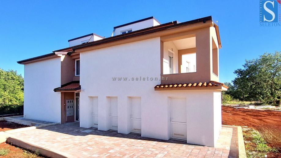 Prodaje se novi stan u okolici Poreča površine 65,60 m², sastoji se od dnevnog dijela, hodnika, 2 natkrivene terase, 2 spavaće sobe i kupaonice. Stan se nalazi na prvom katu u zgradi sa samo 5 stambenih jedinica, ima podno grijanje u kupatilu, 3 klime ( u dnevnom boravku i u spavaćim sobama ), protuprovalna ulazna vrata, pripada mu jedno spremište površine 3,78 m² u prizemlju zgrade i jedno parking mjesto ispred zgrade. Stan je udaljen ca 9 km od centra Poreča i mora.