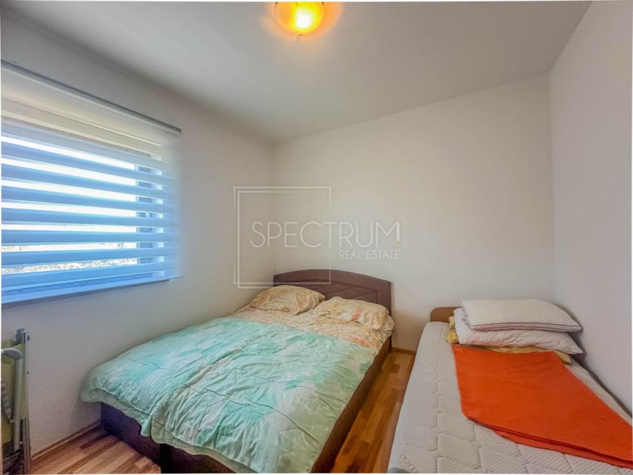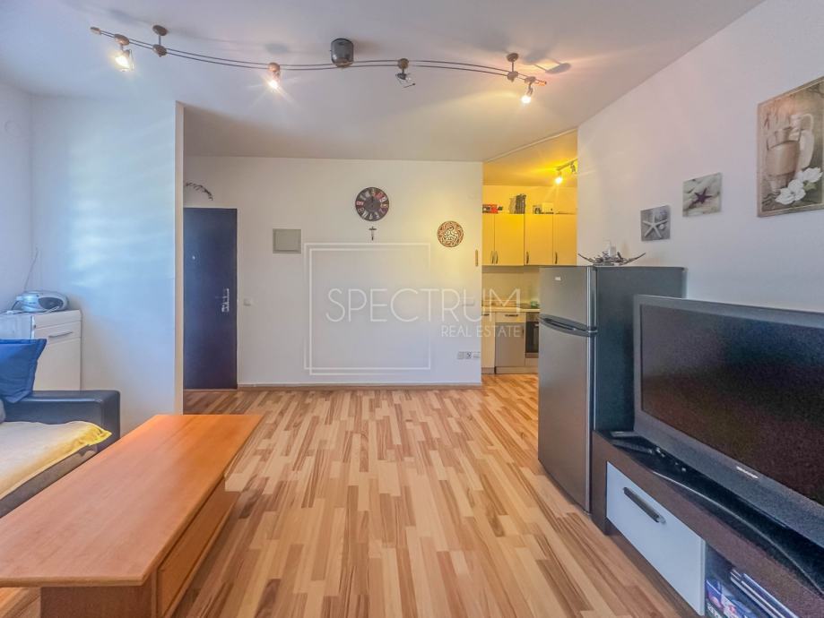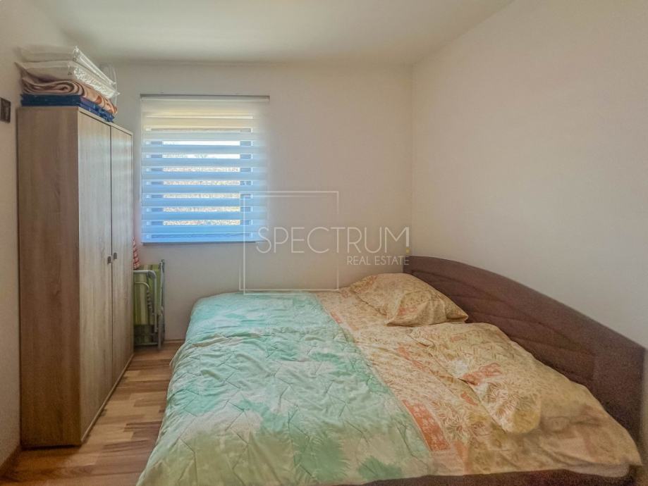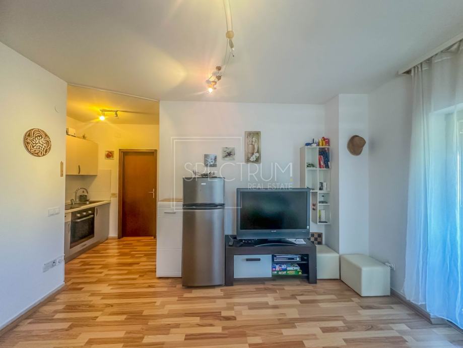 Stan se nalazi u prizemlju stambene zgrade, a površina stana iznosi 33.37 m2. Stan se sastoji od dnevnog boravka zajedno sa kuhinjom i blagovaonicom, spavaće sobe i kupaonice. Grijanje je putem klima uređaja, a stan ima i dimnjak, pa postoji mogućnost ugradnje peći na drva ili peći na pelete. Stan se prodaje namješten. Iz dnevnog boravka izlazi se na natkrivenu terasu, idealnu za uživanje. Sa terase se pruža otvoreni pogled na prirodu i na zelenilo. Sa terase se dolazi do ograđenog dvorišta sa kaminom. Stanu pripada i parking koji se nalazi odmah pored stana.