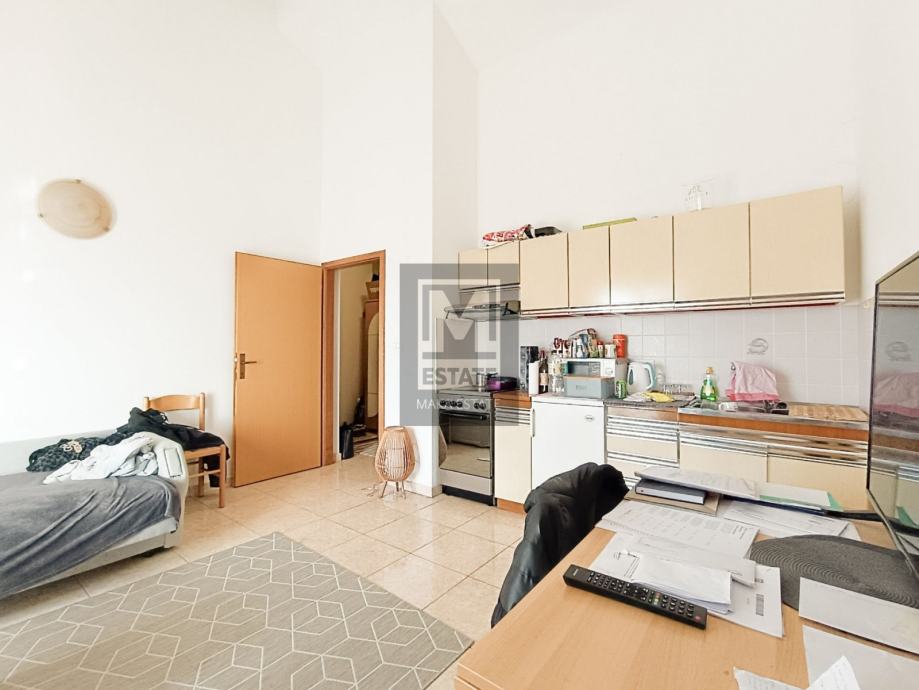 Posebna karakteristika stana je visoki strop u glavnoj prostoriji, pružajući mogućnost izrade galerije koja može poslužiti kao dodatna spavaća soba. Osim toga, stanu pripada spremište u podrumu površine 9,74 kvadratna metra, pružajući dodatni prostor za pohranu. Također, osigurano je jedno natkriveno parkirno mjesto ispred zgrade.