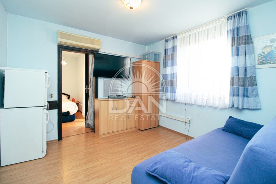 Stan se sastoji od ulaznog hodnika s kuhinjom, kupaonice, dnevnog boravka te jedne spavaće sobe koja ima izlaz na terasu. Nalazi se na odličnoj lokaciji, u blizini svih važnih sadržaja i samo nekoliko minuta hoda od uređenih plaža.