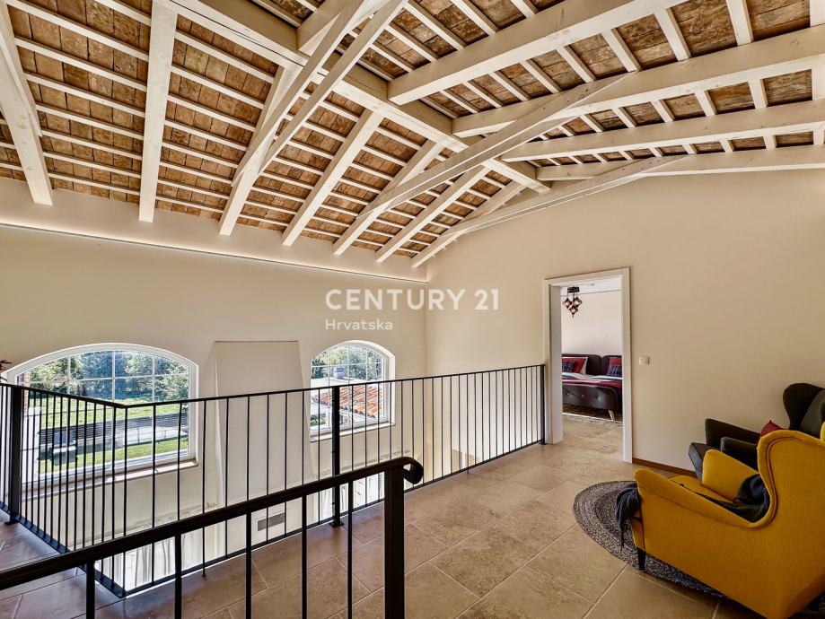 Prostrani dnevni boravak s galerijom, obiljem prirodnog svjetla i kaminom