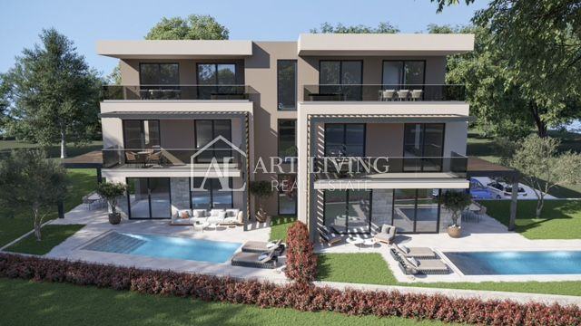 Poreč-okolica, trosoban stan na 2 etaže sa bazenom i vrtom, novogradnj (prodaja)