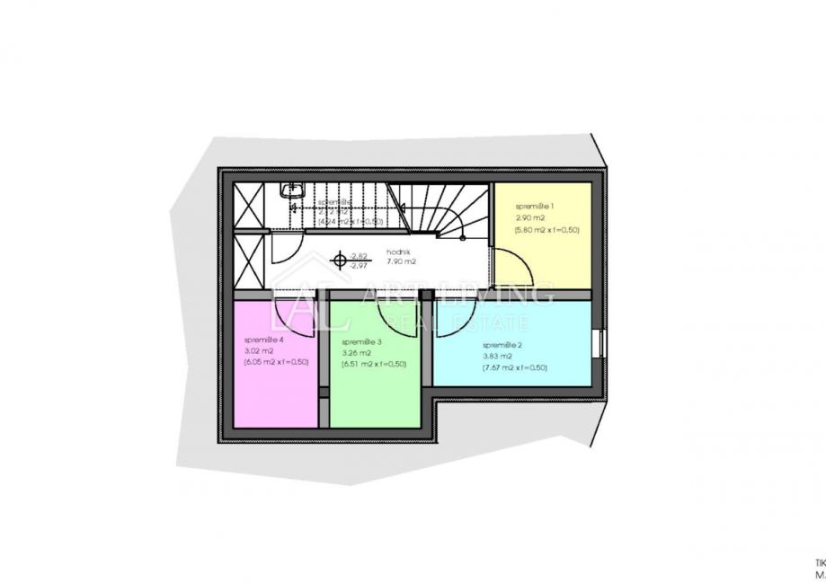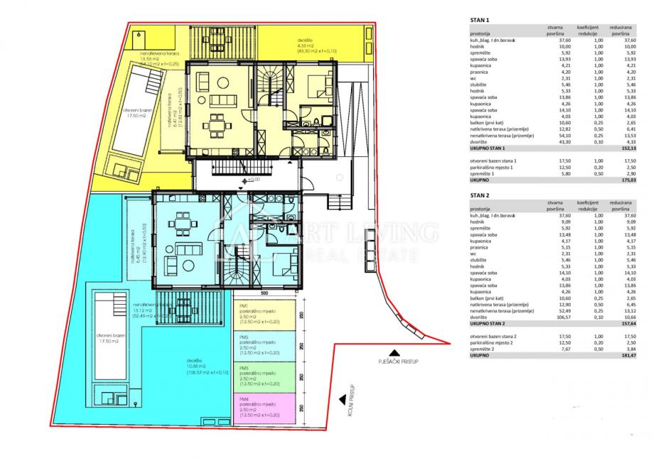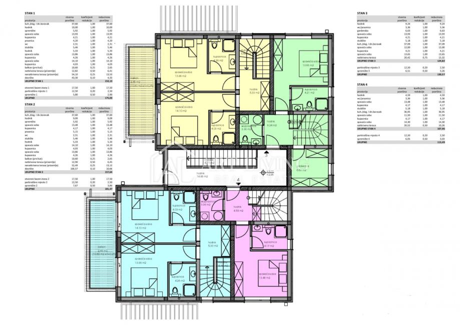 Stan površine 157, 64 m2 proteže se na dvije etaže: prizemlje i prvi kat.