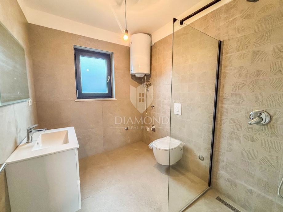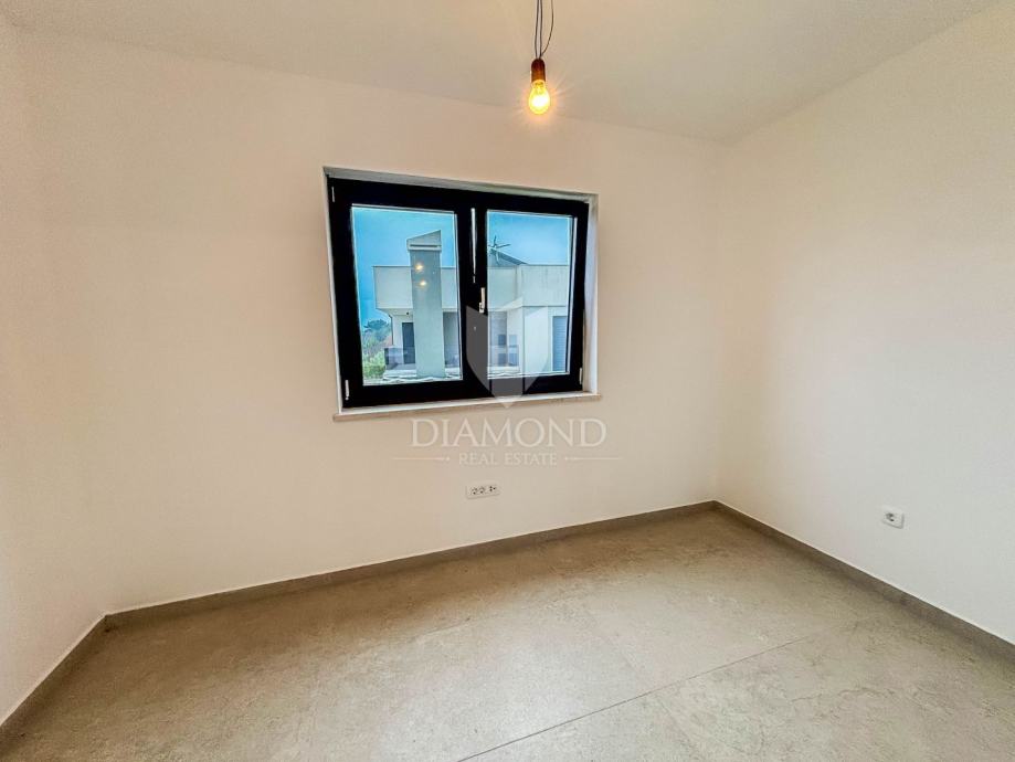 U Vabrigi, nedaleko od Poreč, prodaje se moderan trosoban stan u novogradnji, smješten na prvom katu, spreman za odmah useljenje. Stan ima 89 m² stambene površine i sastoji se od open space dnevnog boravka, kuhinje i blagovaonice, tri spavaće sobe, kupaonice, zasebnog WC-a i dvije ostave.