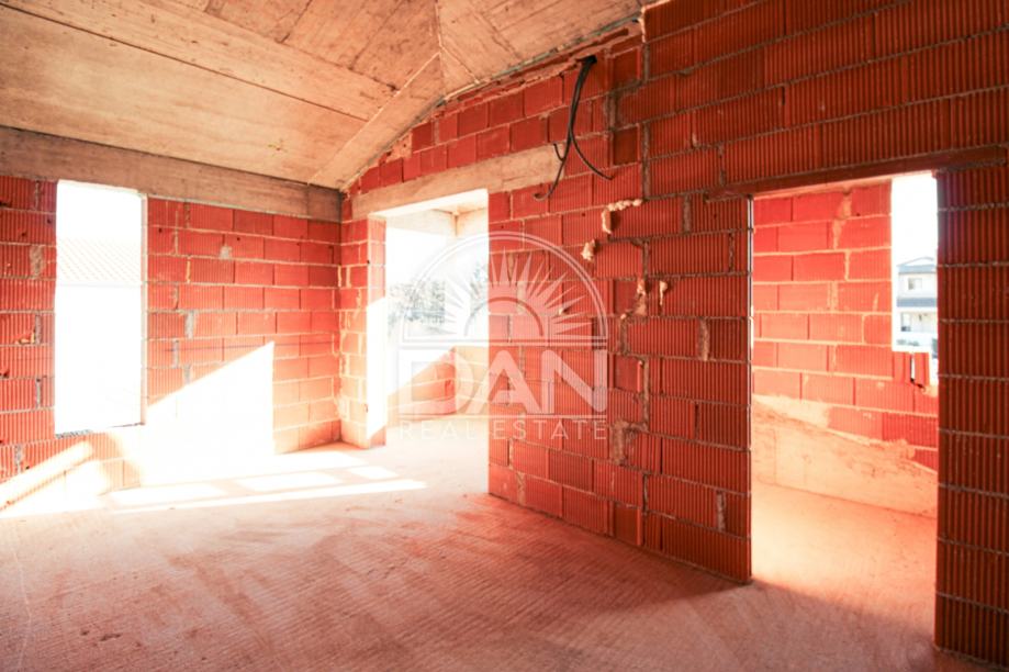 Prostor prizemlja oblikovan je kao otvorena cjelina dnevnog boravka i kuhinje s izlazom na natkrivenu terasu i sunčalište uz bazen od 32 m². Na ovoj etaži nalazi se i jedna spavaća soba te kupaonica. Na katu su smještene još dvije prostrane spavaće sobe, svaka s vlastitom kupaonicom i privatnom terasom koje pružaju dodatnu dozu privatnosti i lijep pogled na okolinu.
