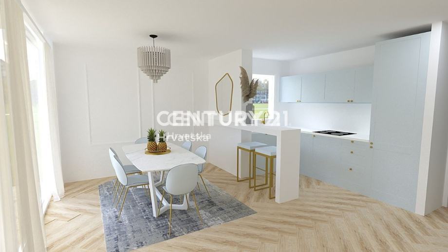 Stan "D" na prvom katu ima dvije spavaće sobe, dnevni boravak s kuhinjom, dvije kupaonice i jedan wc, kotlovnicu i ostavu te krovnu terasu, a na drugom katu nalazi se i wellness prostorija.