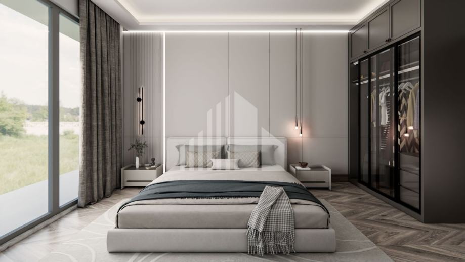 Penthouse uključuje tri prostrane spavaće sobe, svaka s vlastitom luksuzno opremljenom kupaonicom. Jedna spavaća soba ima izlaz na privatnu prostranu terasu, dok preostale dvije spavaće sobe imaju izlaz na zajedničku lođu. Ove spavaće sobe pružaju maksimalnu udobnost i privatnost za sve članove obitelji ili goste. Dodatno, stan ima gostinjski toalet i dva spremišta, čime se osigurava dodatni prostor za pohranu.