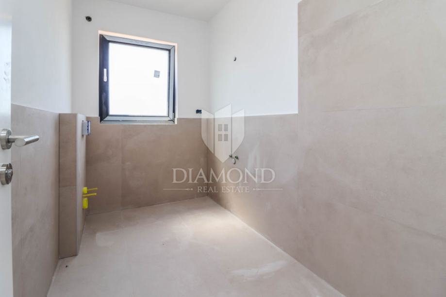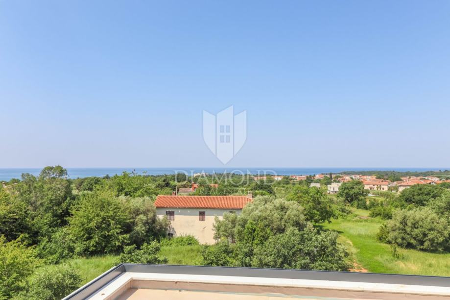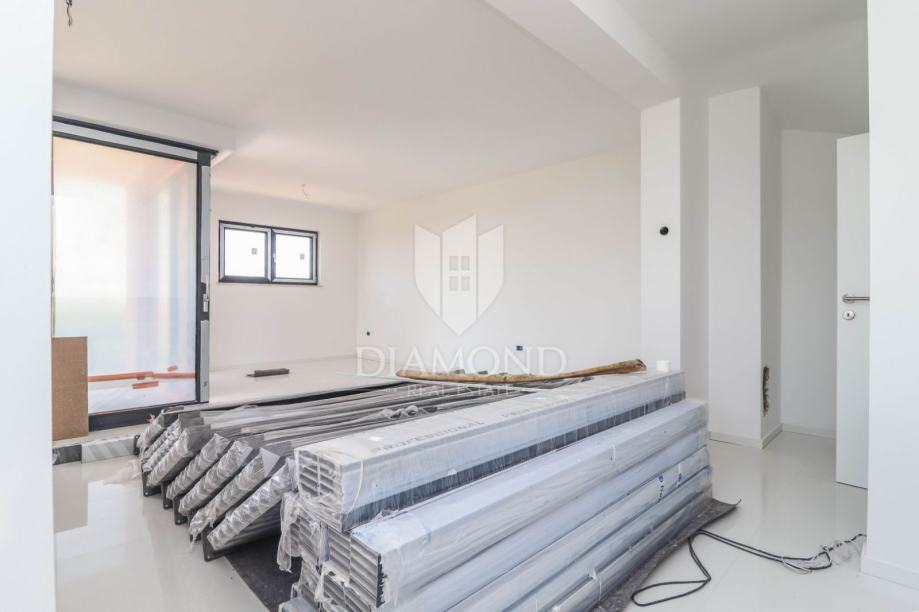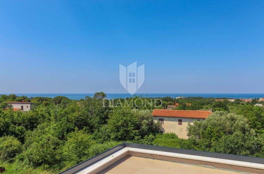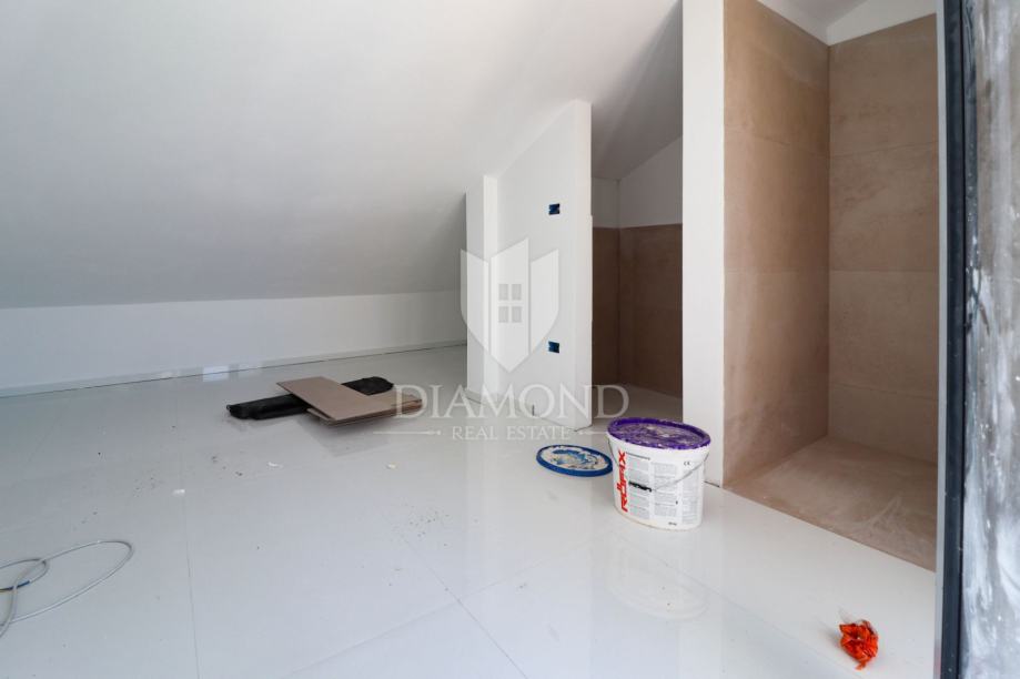 Prodaje se dvoetažni stan na prvom katu zgrade sa 4 stana. Prva etaža stana se sastoji od prostranog dnevnog boravka sa kuhinjom i blagovaonom, tri spavaće sobe od kojih jedna ima vlastitu kupaonu, kupaone, wc-a i ostave. Iz dnevnog boravka izlazi se na natkrivenu terasu sa koje se pruža pogled na prirodu i more. Elegantnim stubištem dolazimo na drugu etažu stana gdje se nalazi prostor za wellnes iz kojeg se izlazi na terasu sa panoramskim pogledom na more!