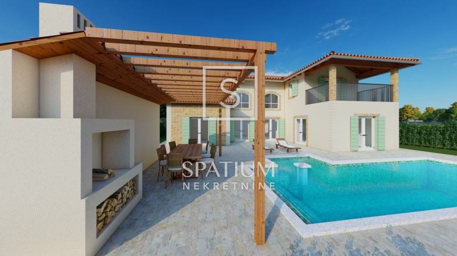 ISTRA, POREČ, u ponudi je kuća za odmor, novogradnja. Na terenu površine 715 m2 smjestila se ova prekrasna kuća površine 170 m2. Zanimljivog vanjskog izgleda, ali i odlično razrađenog interijera odiše toplinom i posebnim šarmom.