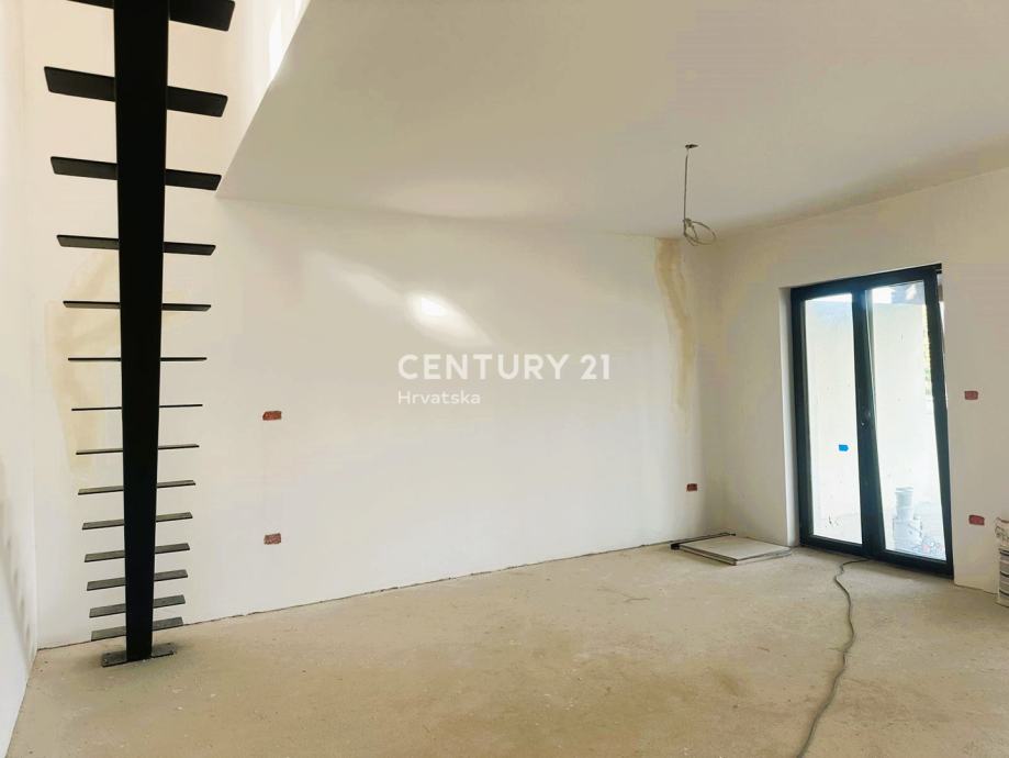 Kuća se prostire na parceli od 340 m2, pružajući dovoljno prostora za uživanje na otvorenom, uključujući zatvoreni balkon, atrij, vrt i terasu. S orijentacijom prema jugu, istoku i zapadu, prostorije su obasjane prirodnim svjetlom tijekom cijelog dana, stvarajući ugodnu atmosferu.