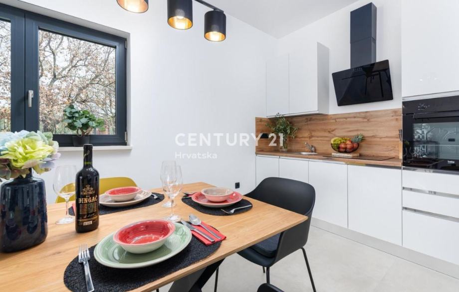 Prizemlje. ulazni dio, wc za goste, stepenice za kat, veliki otvoreni koncept kuhinja, blagovaonica i dnevni boravak s izlazom na veliku, natkrivenu terasu i vanjsku kuhinju.