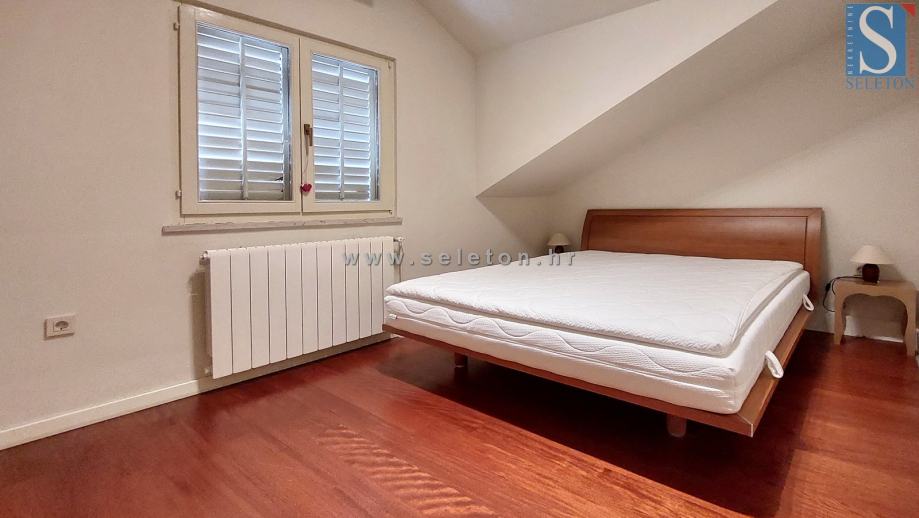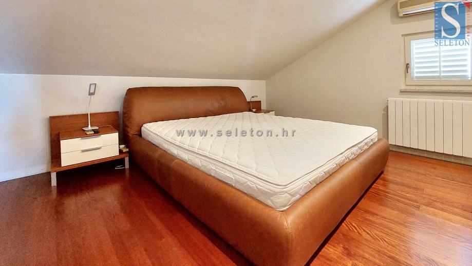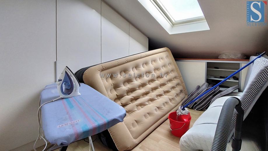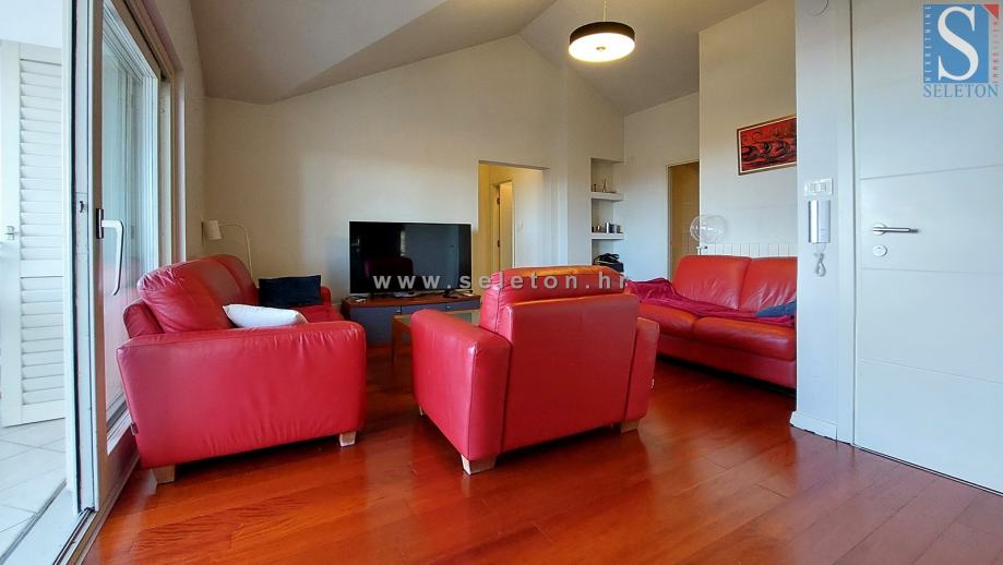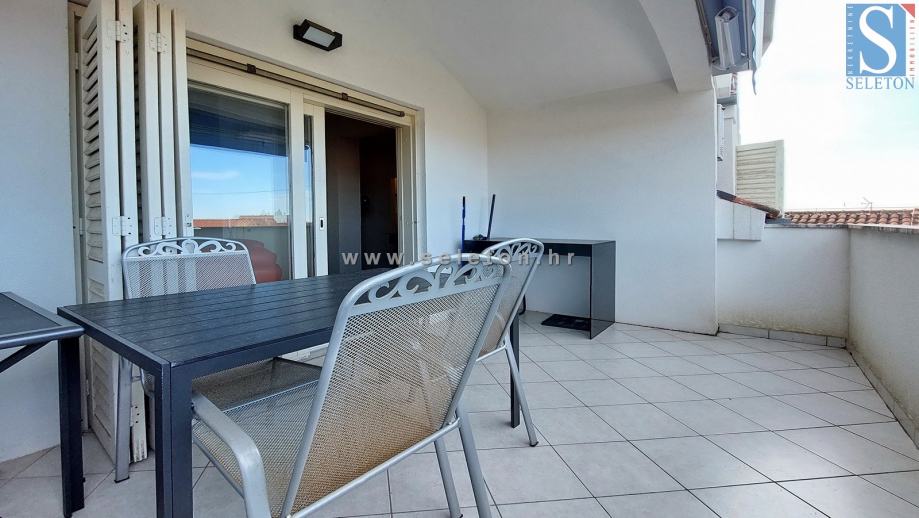 Prodaje se stan u Poreču površine 127 m², sastoji se od dnevnog boravla, kuhinje s blagovaonicom, natkrivene terase s koje se pruža pogled na more, 4 spavaće sobe i 2 kupaonice. Stan se nalazi na drugom katu zgrade, prodaje se kompletno namješten, ima 4 klima uređaja i etažno centralno grijanje (radijatori u svim prostorijama, ali nema peć). Stan je udaljen 3,5 km od centra Poreča, 500 m od mora/plaže i 100 m od stanice gradskog prijevoza.