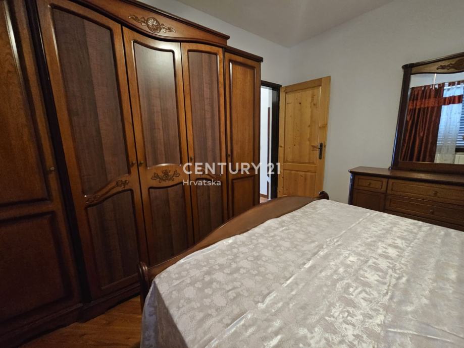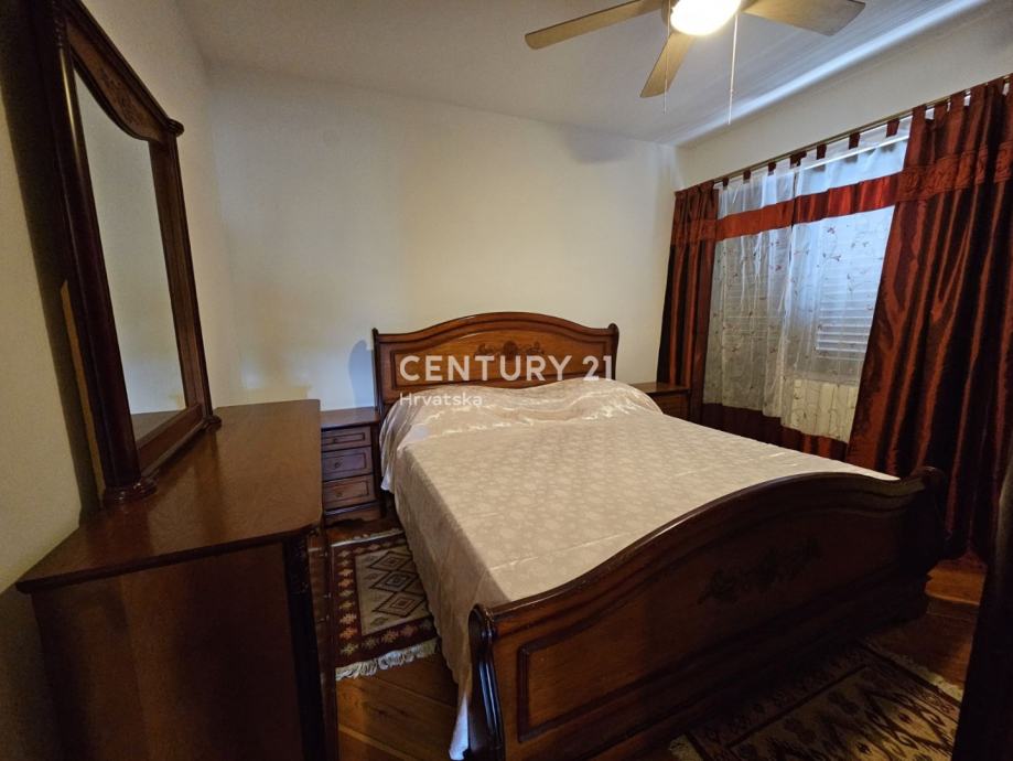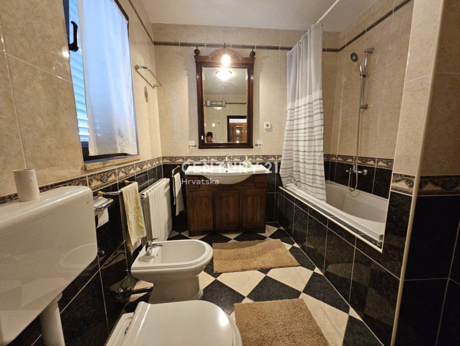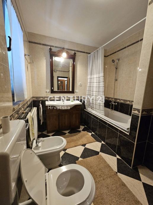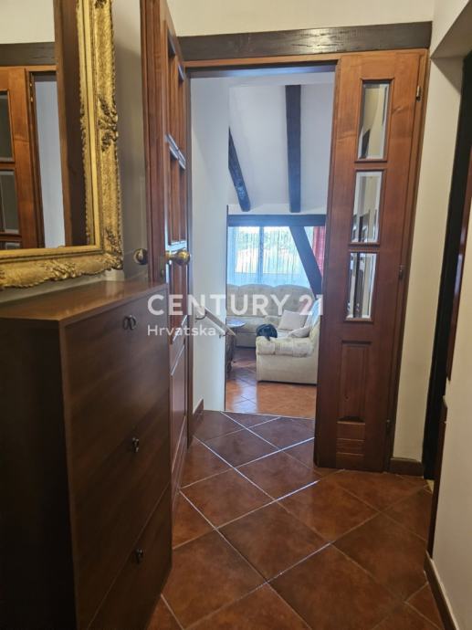 Prodaje se prostran stan na 1. katu kuće s ukupno dvije stambene jedinice, koji zahvaljujući rasporedu, privatnosti, vrtu i garažama pruža osjećaj samostalne kuće.