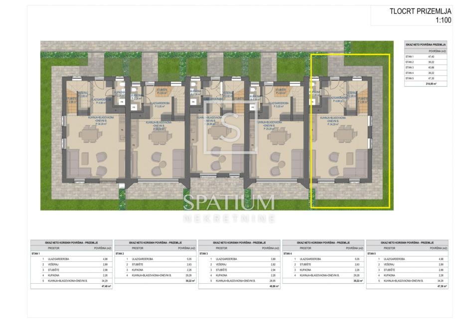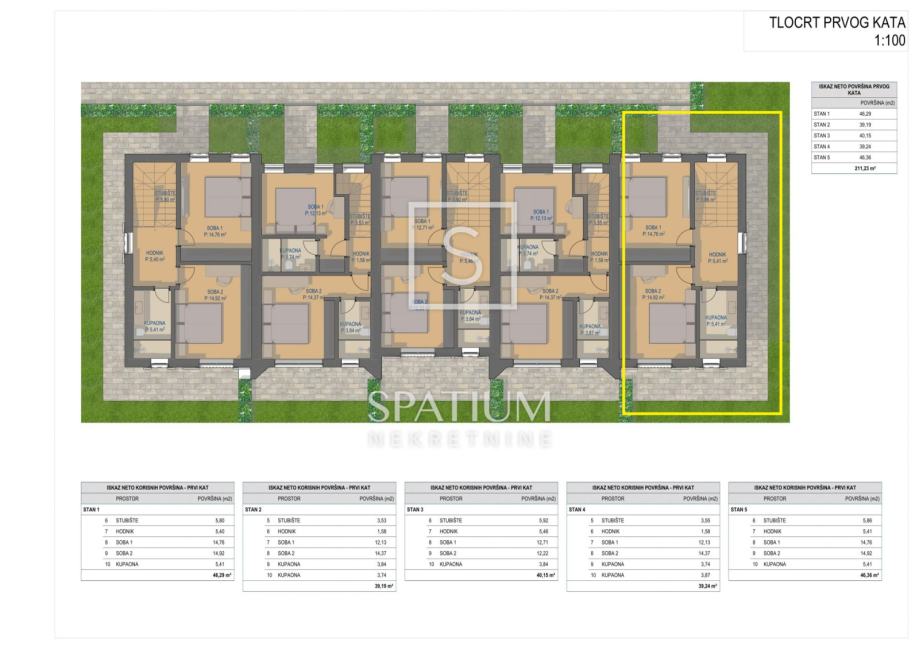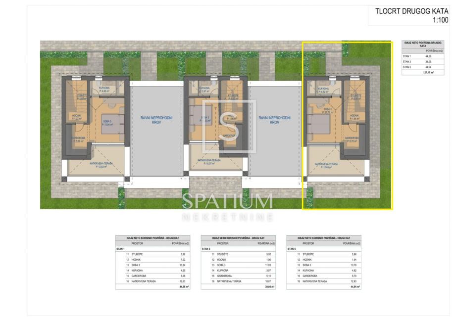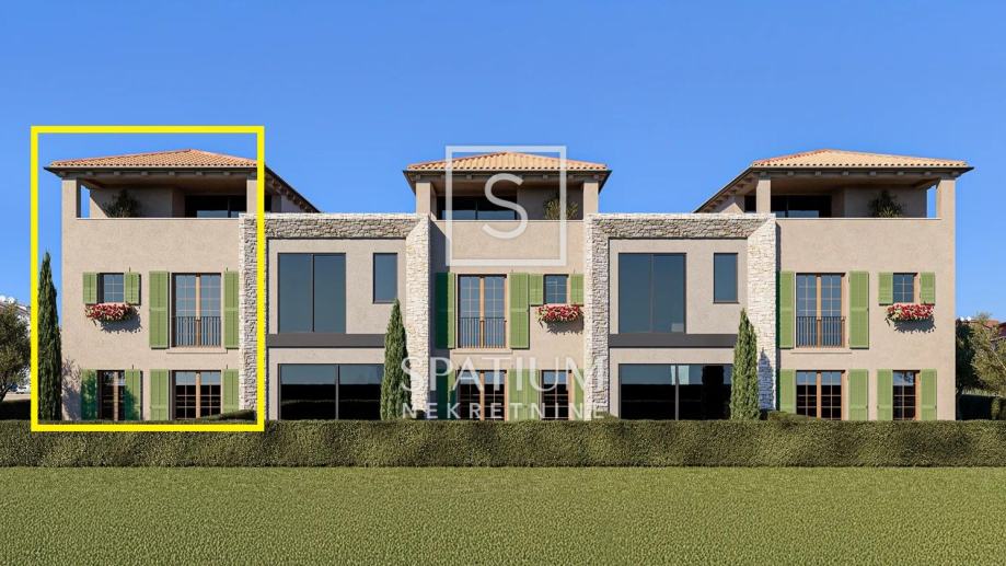 Nudit će funkcionalan raspored s velikim dnevnim boravkom, kuhinjom i blagovaonicom, odvojenom garderobom, vešerajem i WC-om. Iz dnevnog boravka izlazit će se na okućnicu površine cca 148 m2, koja će se moći urediti prema željama budućeg vlasnika. Unutarnje stubište vodit će na prvi kat, gdje će se nalaziti dvije udobne spavaće sobe i zajednička kupaonica. Na drugom katu bit će smještena prostrana master spavaća soba s vlastitom kupaonicom, walk-in garderobom i natkrivenom terasom koja će biti idealna za opuštanje.