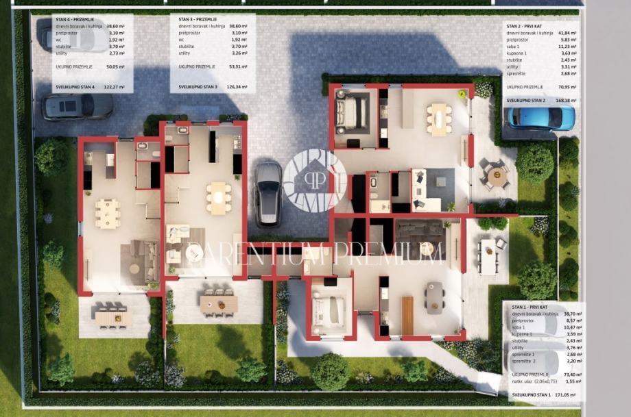 Prodaje se moderna prostrana dvojna kuća na traženoj lokaciji u Poreču nadomak svih sadržaja potrebnih za život.