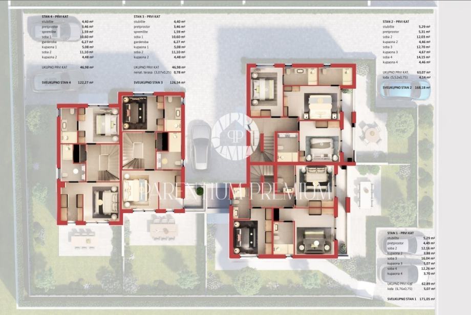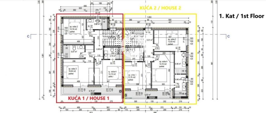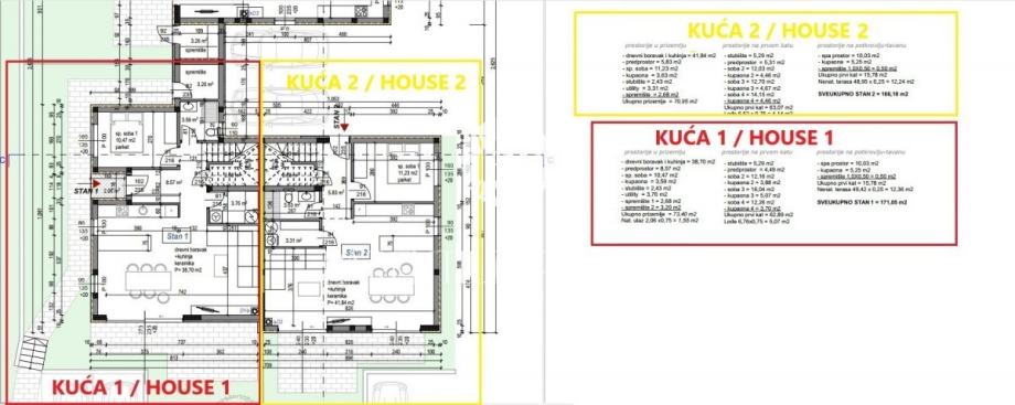 Kuća broj 2 je ukupne površine 171 m2 i proteže se na tri etaže.