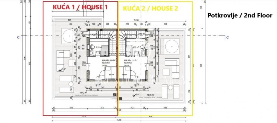 U potkrovlju se nalazi SPA relax prostor za saunu, kupaonica te velika terasa sa priključkom za Jacuzzi.