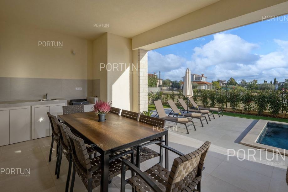 Luksuzna kuća za odmor u okolici Poreča, sa tri prostrane spavaće sobe, njegovanim vrtom, terasom popločanom kamenom i bazenom, predstavlja idealnu investiciju koja će brzo vratiti uloženo, a istovremeno je savršena za obiteljski odmor. Ova prekrasna kuća smještena je u mirnom mjestu nedaleko od Poreča, samo 2 km udaljena od plaže. Izgrađena 2022. godine, ova moderna nekretnina pruža sve pogodnosti suvremenog života. Kuća ima skimerski bazen veličine 16,00 m², idealan za opuštanje i osvježenje u toplim ljetnim danima. Unutar kuće nalaze se tri prostrane spavaće sobe i tri moderne kupaonice, pružajući dovoljno prostora i udobnosti za cijelu obitelj. Kuća je smještena na zemljištu površine 724 četvorna metra, što omogućuje dovoljno prostora za vanjske aktivnosti i uživanje u prirodi. Ova nekretnina opremljena je suvremenim sustavima kao što su podno grijanje na dizalicu topline, kompletna klimatizacija za maksimalnu udobnost te solarni paneli za grijanje vode, čime se postiže visoka energetska učinkovitost. Također, kuća ima parkiralište koje može primiti dva automobila. Za više pitanja o ovoj luksuznoj kući, obratite se našem timu koji će vam rado pomoći. KLJUČNE OSOBINE✔ 3 Spavaće sobe | 3 Kupaonice✔ Izgrađeno 2022. g.✔ Podno grijanje na dizalicu topline✔ Solarni kolektor✔ Skimerski bazen 16,00 m2✔ Plaža 2 kmSAZNAJTE VIŠEViše informacija o oglasu broj 20860 saznajte na https://portun.comDirektan link na oglas: https://portun.com/hr/20860/Za sva dodatna pitanja na raspolaganju je agent posredovanja Alesandro Laginja +385919386003