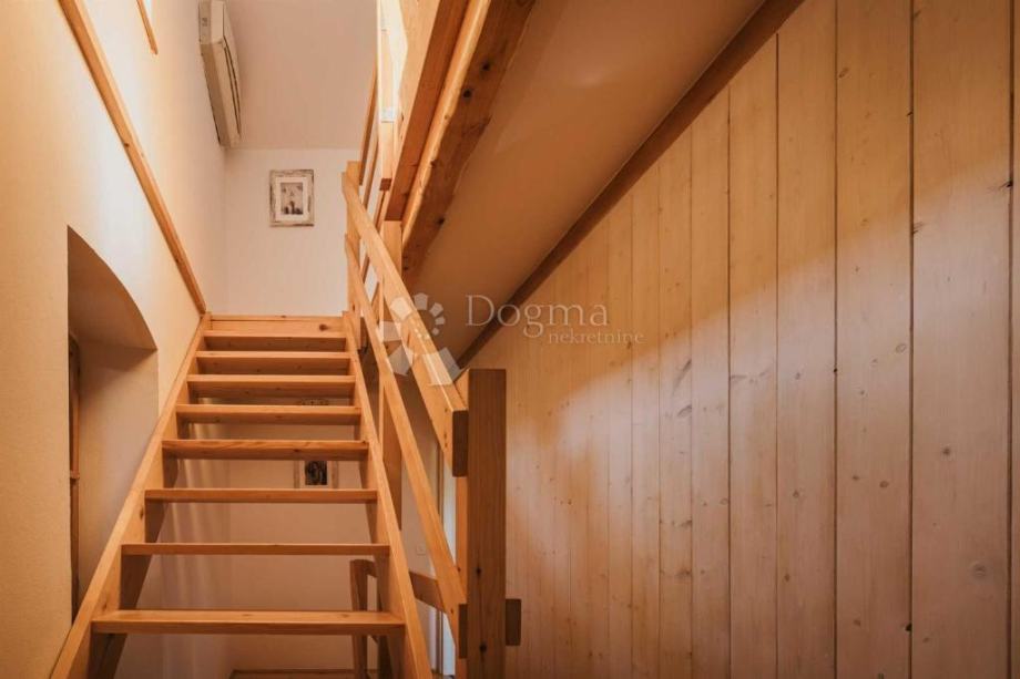 U prizemlju se nalazi moderna kuhinja rađena po mjeri, ugodan dnevni boravak, blagovaonica te kupaonica. Drvene unutarnje stepenice vode na prvi kat koji čini jedna prostrana spavaća soba, dok se u potkrovlju nalazi dodatna spavaća soba s vlastitom kupaonicom.