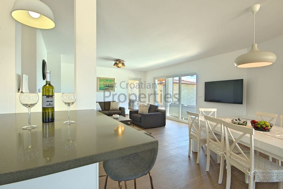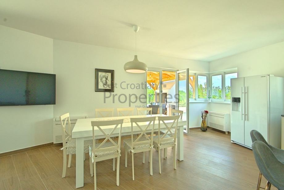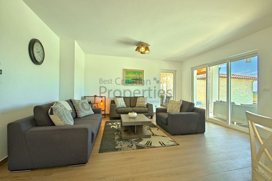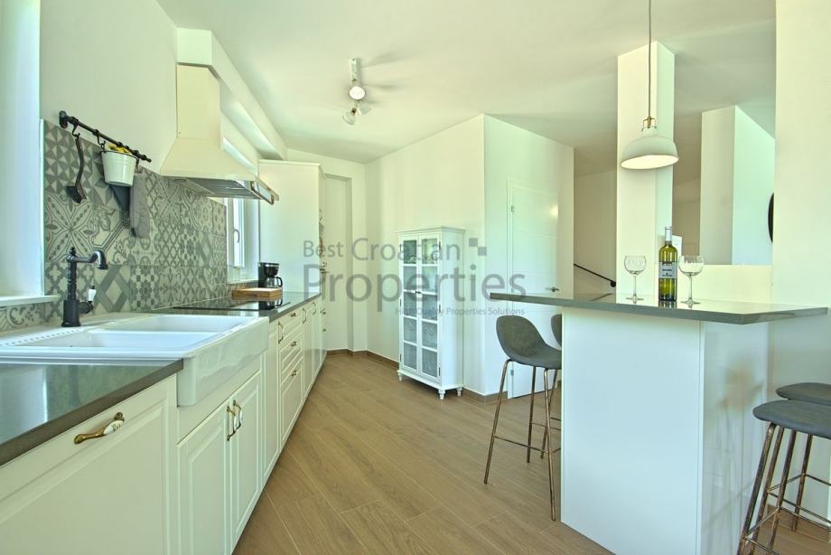 Vila je spoj modernog i rustikalnog stila, kompletno je namještena i kao takva se prodaje.