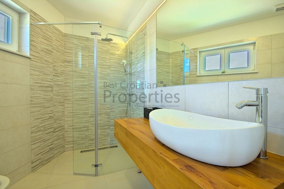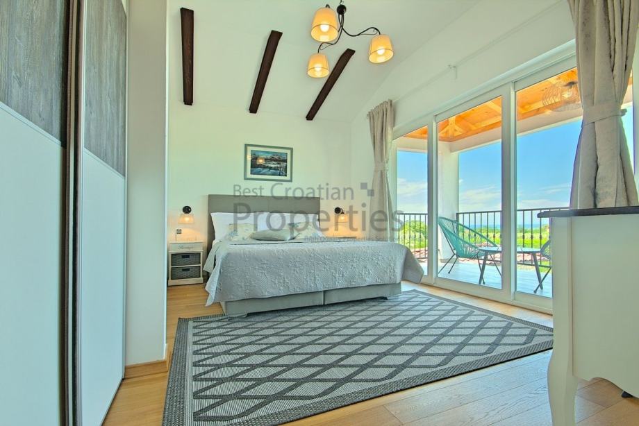 1.KAT: tri prostrane spavaće sobe, svaka sa svojom kupaonicom i terasom s koje se pruža predivan pogled na more i okolnu prirodu