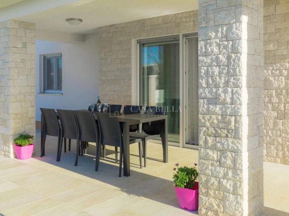 Na kultiviranoj okućnici od 650 m2 smjestila se natkrivena vanjska terasa , blagavaonica sa stolom za 8 osoba , bazen površine 32 m2 s popločenim sunčalištem ,vanjski tuš , lounge zona s ležaljkama , ograđena okućnica s uređenim vrtom ,privatno parkiralište za 3 automobila. Na raspolaganju Vam je i roštilj na ugljen - zabavite se roštiljajući i uživajte jedući vani, na terasi vile. Ukoliko tražite bijeg od gužve i stresa onda je ovo idealna nekretnina za Vas !!!