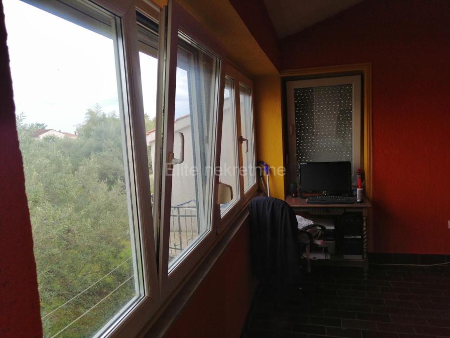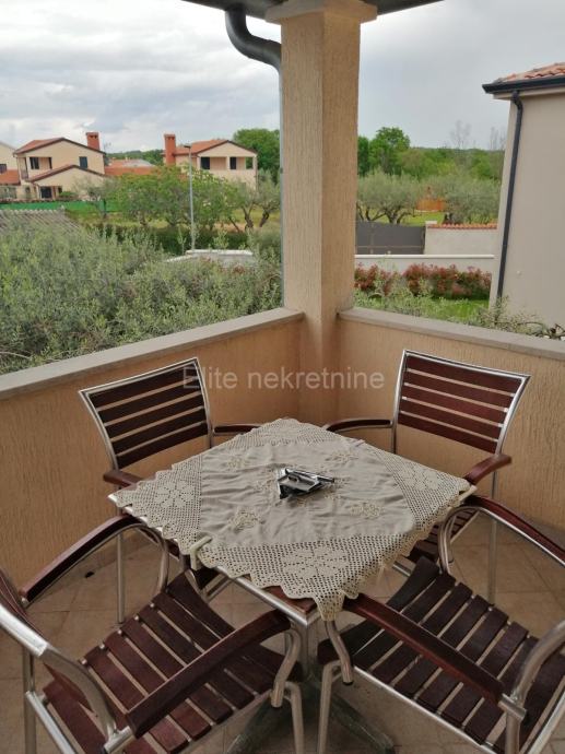 U sjevernom djelu grada Poreča, zoni bogatoj višeapartmanskim kućama, hotelima i resortima, privatnim villama i kampovima visoke kvalitete i estetike, prodaje se stan u privatnoj kući od ukupno 2 stana. Stan se nalazi na prvome katu, veličine je 97m2 stambene površine plus 30 m2 terasa i lođe. Pripada mu 550 m2 okućnice sa kaminom te parkirno mjesto.