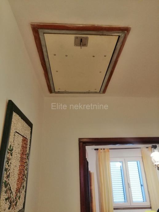 Stan je trosoban sa dnevnim boravkom i blagovaonom u otvorenom konceptu, kuhinjom, ulaznim hodnikom i dvjema kupaonama. Pokretnim stepeništem dolazi se u potkrovlje kuće koje trenutno služi kao spremište, ali daje mogućnst dizanja visine čime se u konačnici dobija tloocrtno cijela iskoristiva površina.