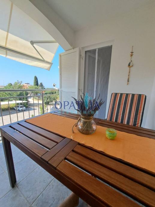 Poreč. U prodaji je stan na 2. katu novije višestambene zgrade koji se sastoji od velikog predprostora, kuhinje s blagovaonom i dnevnim boravkom, kupaonice i lijepe, velike terase s koje se pruža pogled na more. Sa ostavom u podrumu i natkrivenim parkirnim mjestom u vlasništvu, ukupne je površine 61 m2. Nalazi se na lijepoj, mirnoj lokaciji, opremljen je, ukusno namješten, klimatiziran, udaljen od mora cca 800 m, idealan za ugodan ljetni odmor. Ovu nekretninu, pogodnu i za turistički najam ili cjelogodišnje stanovanje, u održavanoj, kvalitetnoj zgradi, vrijedi pogledati.