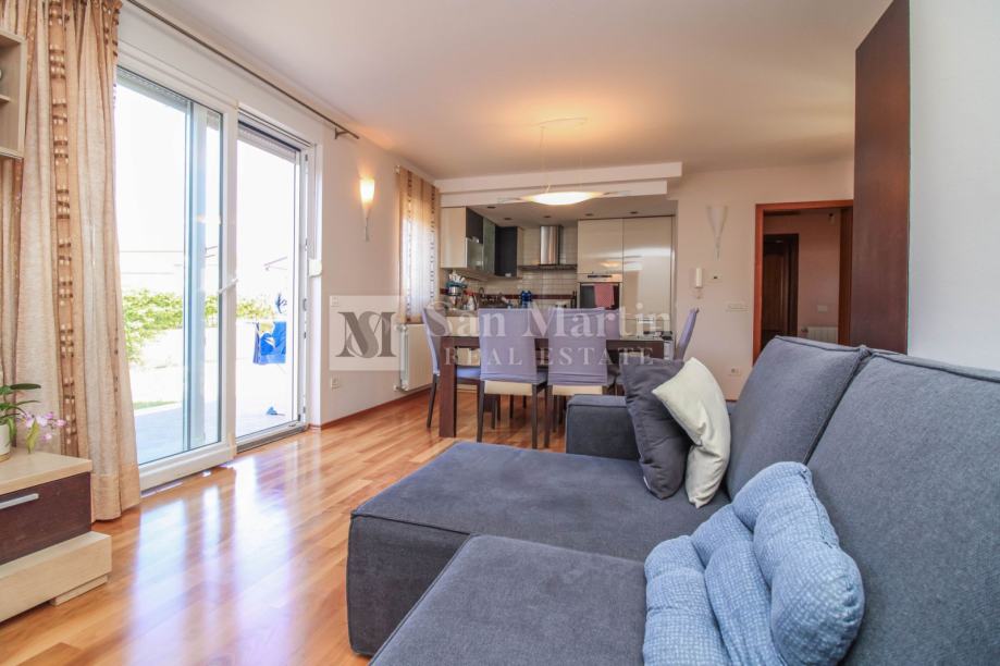 Stan se sastoji od dvije prostrane i svijetle spavaće sobe, otvorenog i funkcionalnog dnevnog prostora te moderno opremljene kuhinje. Poseban adut je privatni vrt, koji pruža miran kutak za opuštanje, obiteljska druženja ili uživanje na suncu.