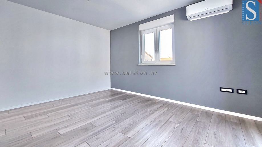 Prodaje se novi stan površine 65 m² u okolici Poreča, sastoji se od ulaznog hodnika, dnevnog boravka, natkrivene terase, kuhinje, dvije spavaće sobe i kupaonice. Stan ima PVC stolariju s 3 IZO stakla i komarnicima, klime u svim sobama, podno grijanje u kupaonici i 2 parkirna mjesta ispred zgrade. Stan se nalazi na prvom katu zgrade, udaljen je cca 8 km od mora i cca 7 km od centra grada, u naselju se nalazi škola, dječji vrtić, supermarket i restorani.