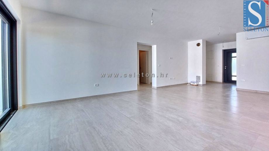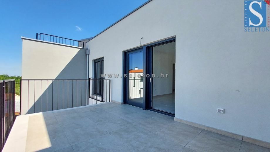 Prodaje se stan površine 83,80 m2, sastoji se od dnevnog boravka, kuhinje, blagovaonice, terase, dvije spavaće sobe, kupatila i WC-a za goste, ima dimnjak, električne rolete, klima uređaj u dnevnom boravku i u spavaćim sobama te podno grijanje u kupatilu. Stan se nalazi na prvom katu, ima zaseban ulaz, pripada mu krovna terasa površine 56 m2 s koje se pruža pogled na more i dva parkirna mjesta. Stan je udaljen ca 5 km od mora/plaže i ca 6 km od centra Poreča, do prve trgovine i restorana ima ca 1 km.