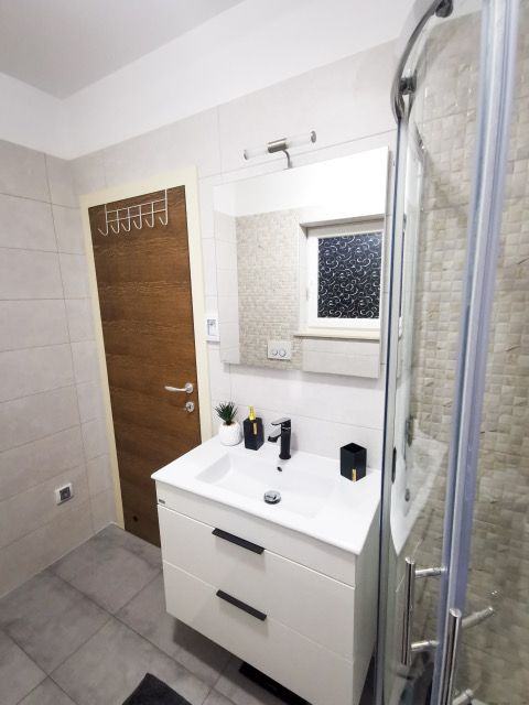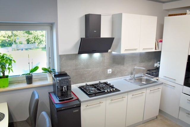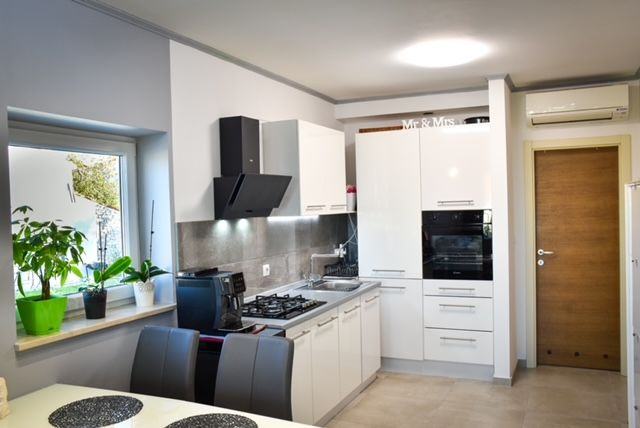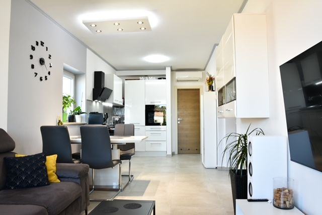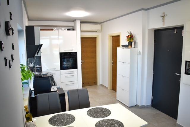 Prodaje se moderan stan površine 43 m² na prvom katu zgrade u mirnom naselju, udaljenom 3 km od centra Poreča.