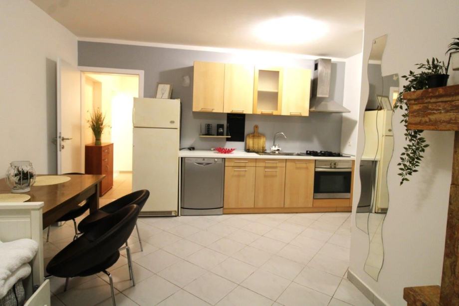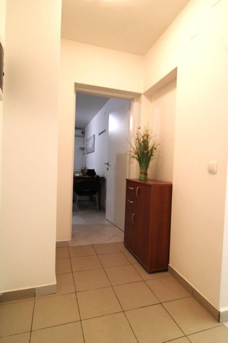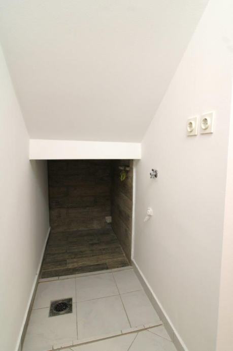 Stan je renoviran i sastoji se od dnevnog boravka, blagovaone i kuhinje, 2 spavaće sobe, hodnika, ostave/vešeraja i kupatila, te spremište od 5.40m2.