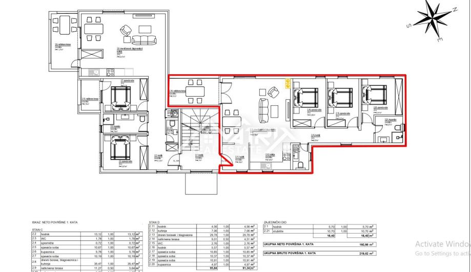 U samoj blizini mora i grada prodaje se stan u stambenoj zgradi sa pet stambenih jedinica. Stan se nalazi na katu površine 95 m2 i sastoji se od prostranog dnevnog boravka, kuhinje i blagovaone sve u open space konceptu, dvije udobne spavaće sobe, jednog kupatila, jednog WC-a te jedne terase.