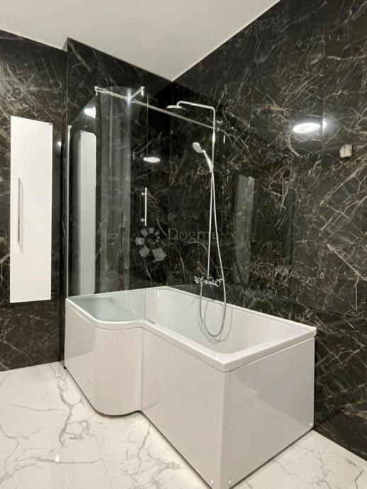 Stan je u potpunosti renoviran visoko kvalitetnim materijalima te je postavljeno podno grijanje u dnevnom prostoru i kupaonama.