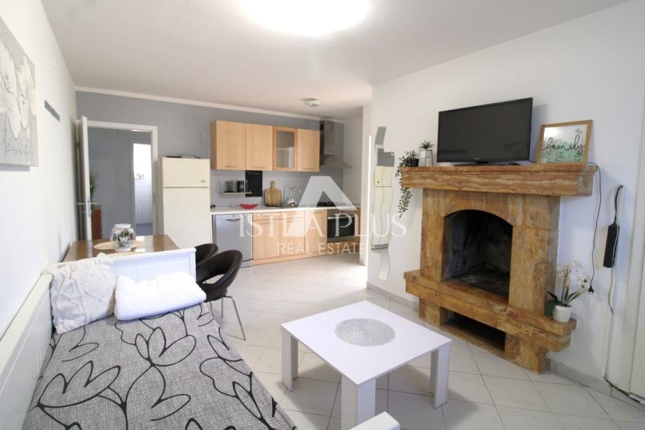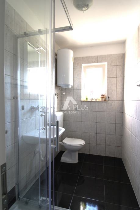 Stan je renoviran i sastoji se od dnevnog boravka, blagovaone i kuhinje, 2 spavaće sobe, hodnika, ostave/vešeraja i kupatila, te spremište od 5.40m2.