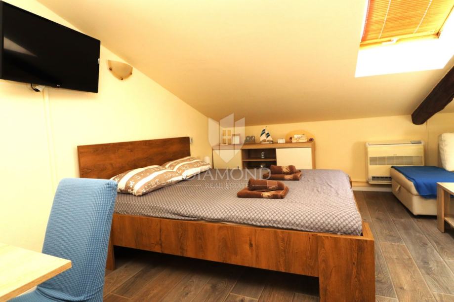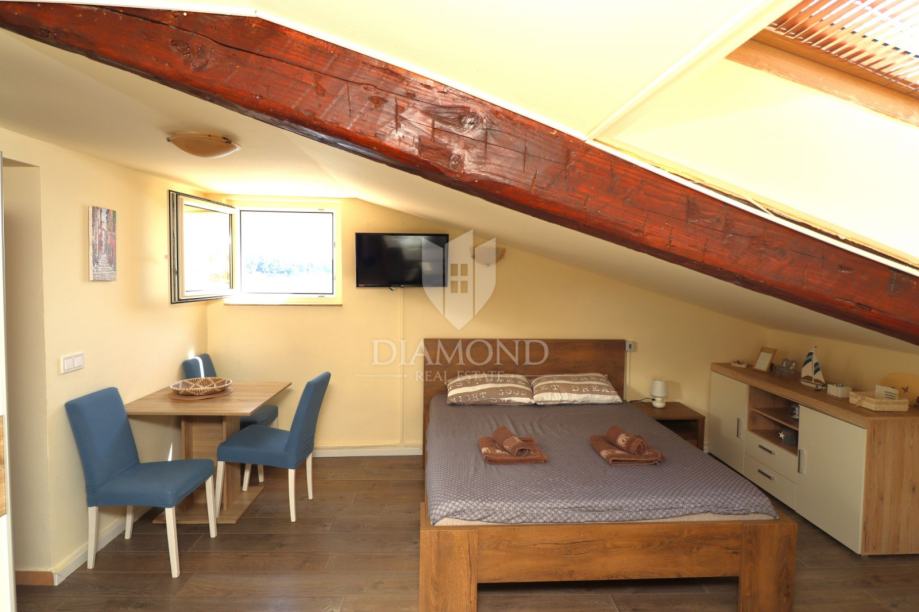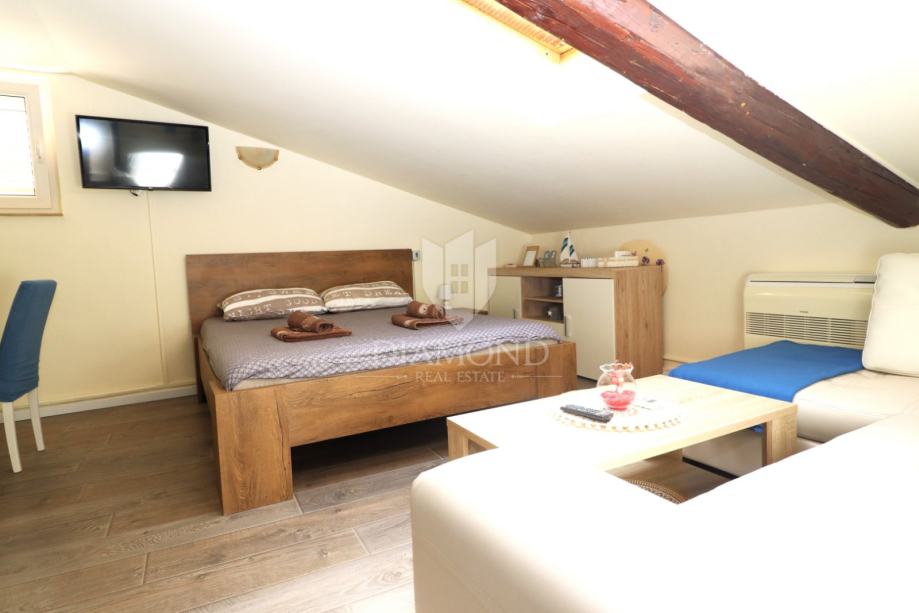 U ponudi je šarmantan i funkcionalan studio apartman koji odiše toplinom i udobnošću. Smješten na mirnoj lokaciji u neposrednoj blizini mora, ovaj prostor savršen je spoj praktičnosti i opuštajuće atmosfere. Iako se nalazi u urbanom području, studio pruža osjećaj privatnosti i mira, uz obilje prirodnog svjetla koje dolazi kroz krovne prozore.