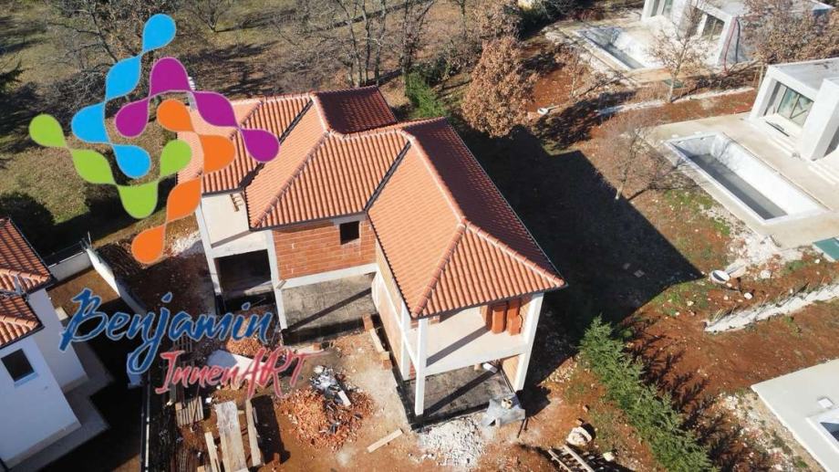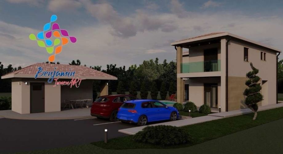 Ova obiteljska kuća s bazenom već je izgrađena na prostranoj parceli od 1549 četvornih metara. Ovdje ste u novom razvojnom području 10 km od Poreča i 6 km od Tara gdje također imate mogućnosti kupanja.