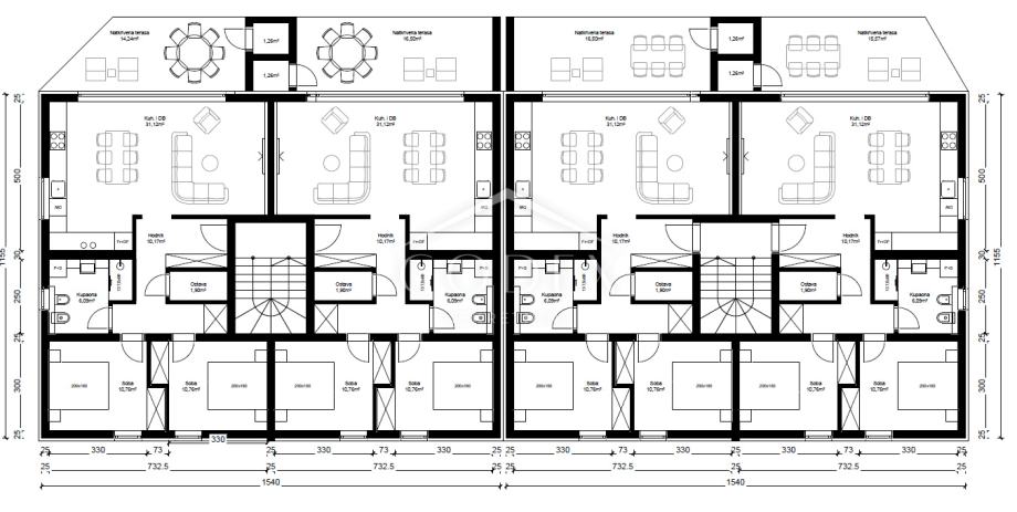 Stanovi su raspoređeni na dvije etaže (prizemlje i kat).